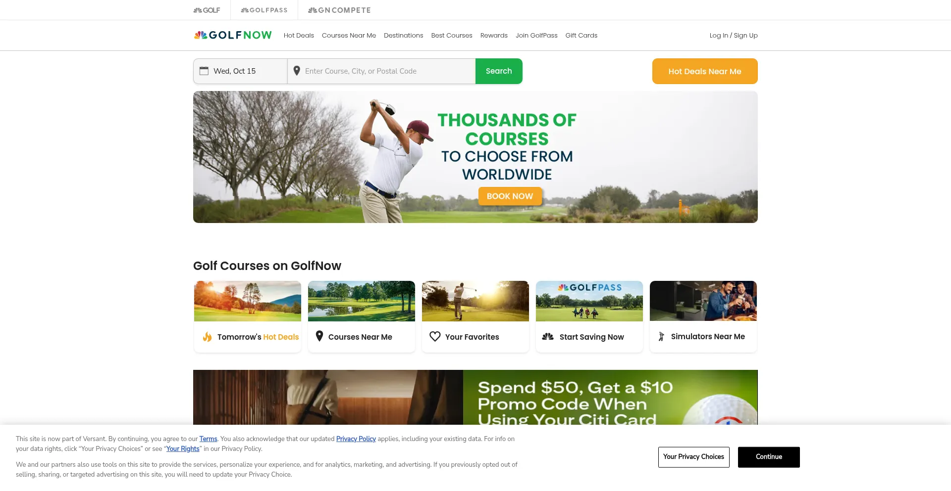 The website implements cookie consent mechanisms in compliance with privacy regulations such as GDPR or CCPA. This demonstrates that golfnow.com adheres to data protection standards and provides users with control over personal data collection practices.