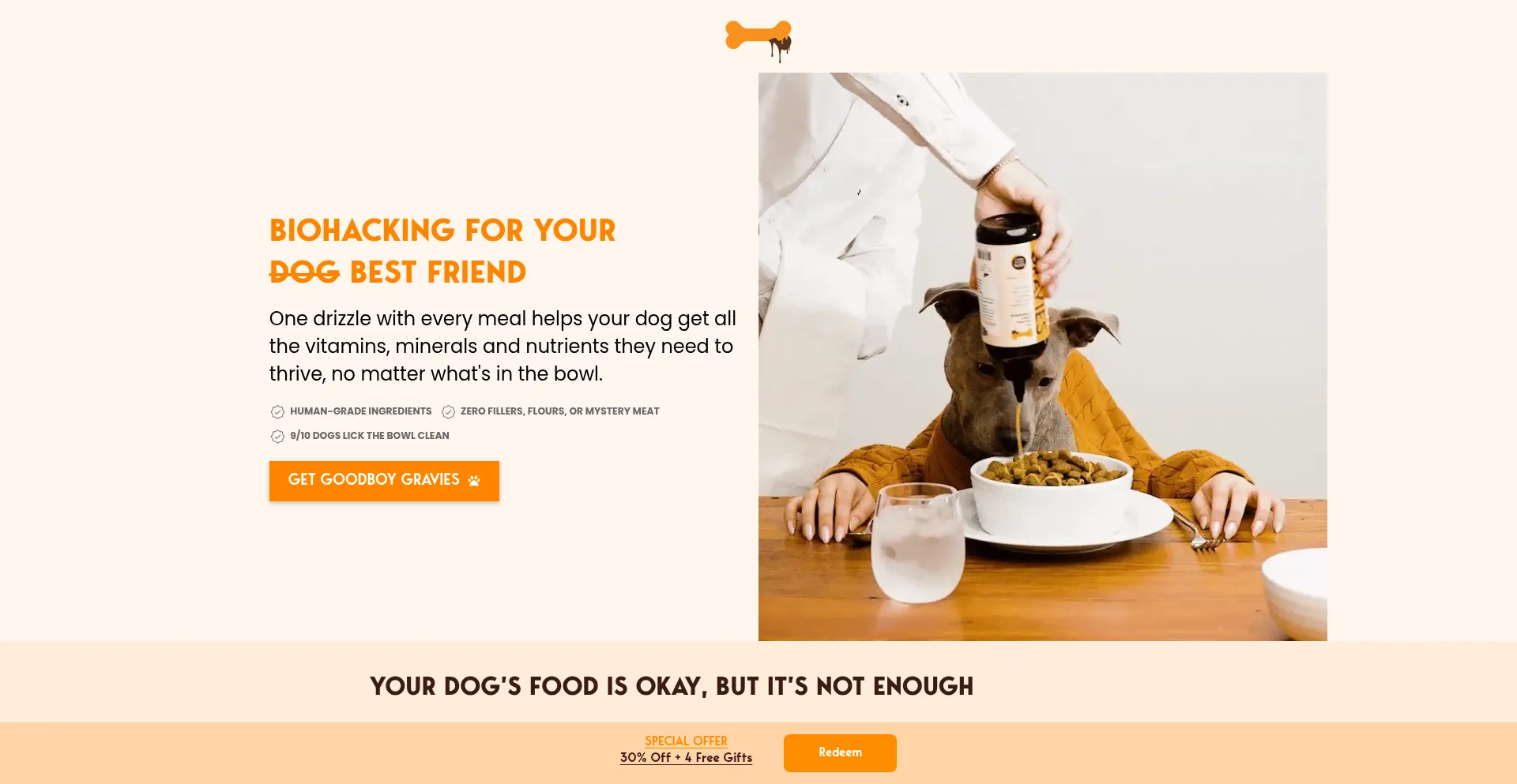 Does your dog keep ignoring that boring bowl of bland kibble? Goodboy Gravies can help! Our liquid pet food toppers provide natural flavors and essential nutrients that transfor...