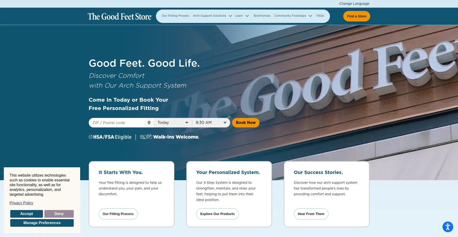 The goodfeet.com website uses Google Tag Manager to add and update tracking tags on its website.