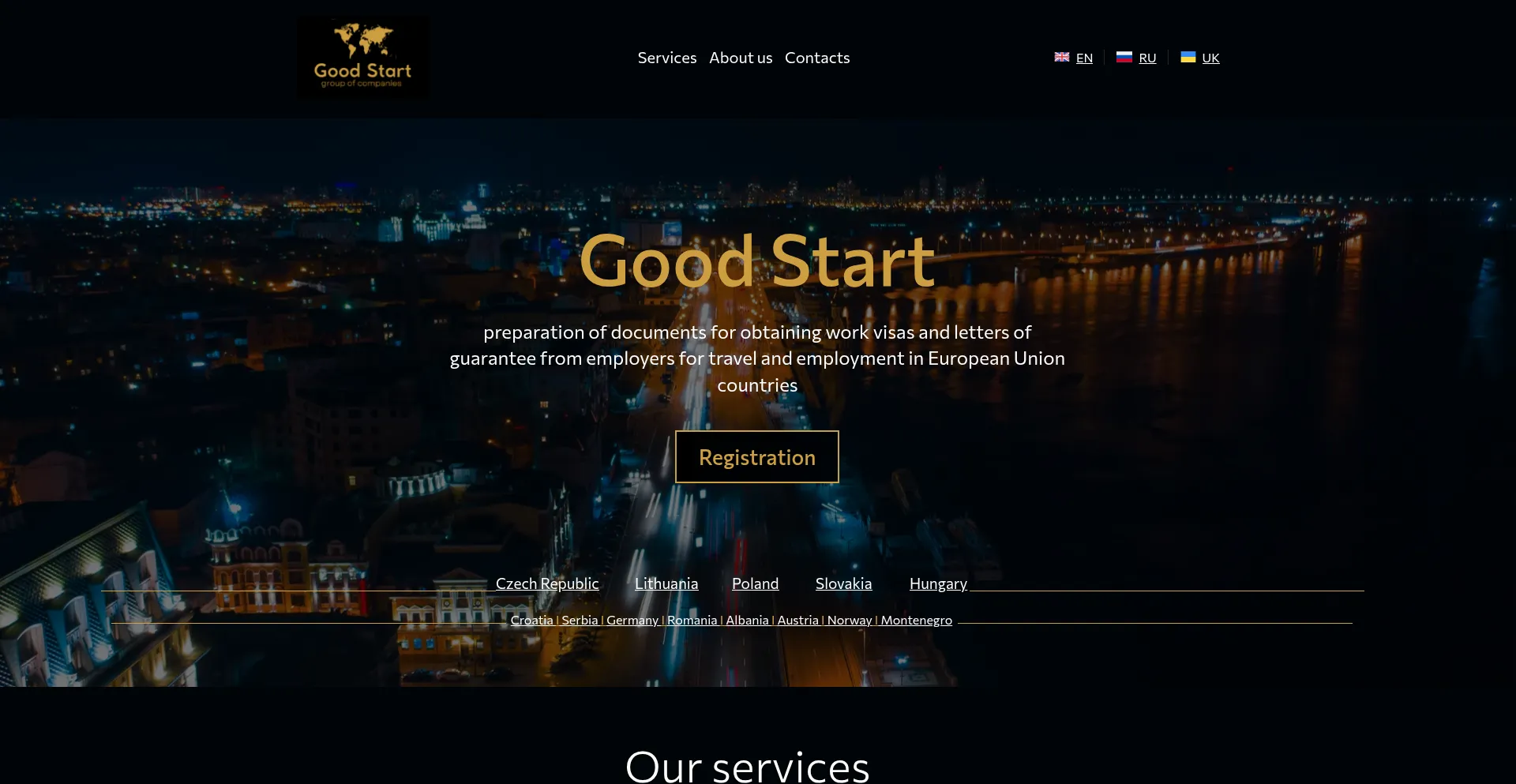 Jobs Visa Service Registration Form Website Builder Social Media Links Webpack Module Bundler AI-generated Text Multilanguage Long Term Domain High Trust Score