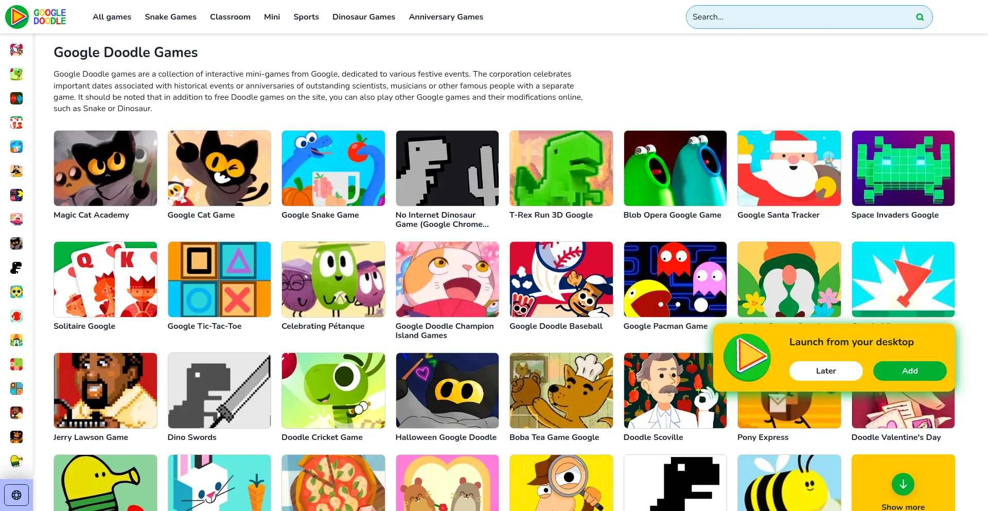 Play funny Google Doodle Games absolutely free online. Get an amazing gaming experience with Google Games on GoogleDoodle-Games.