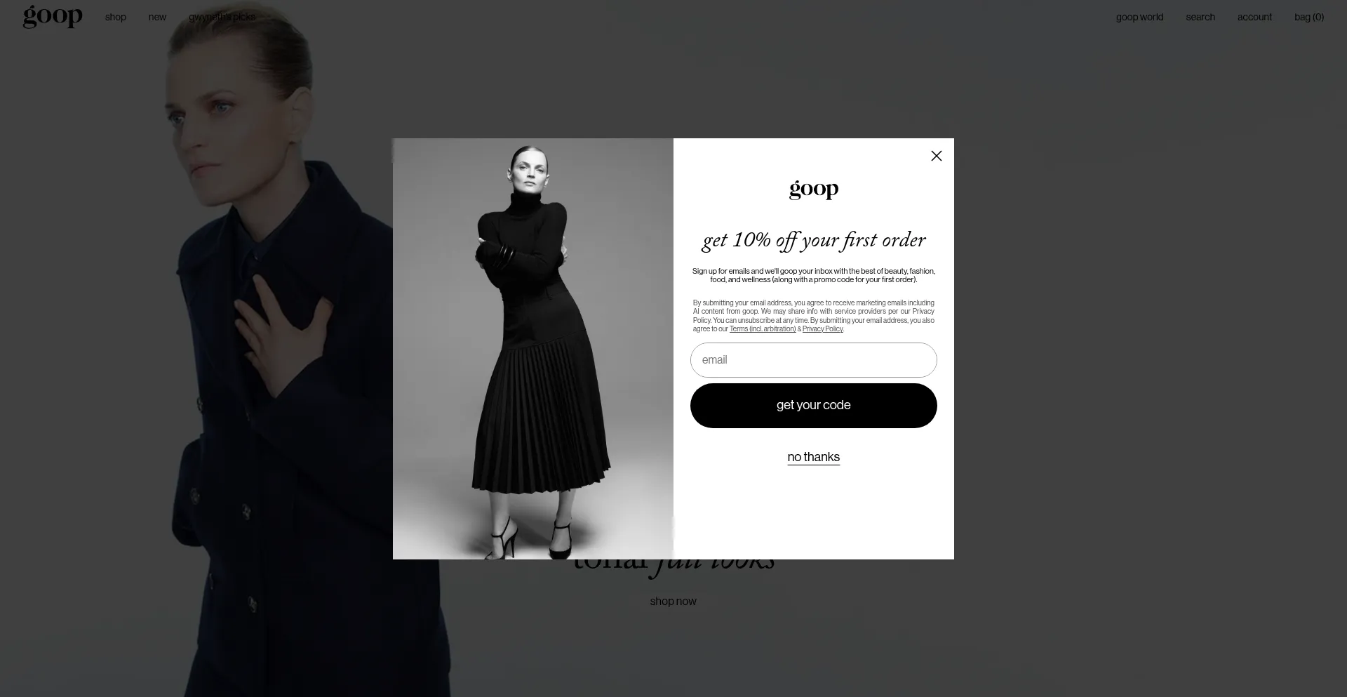 The goop.com website implements data collection forms requesting personal information including names, email addresses, phone numbers, or other sensitive details. Users should verify the legitimacy of it and review privacy policies before submitting personal data.