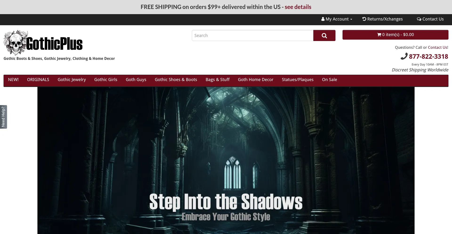 Analysis indicates that gothicplus.com operates as an e-commerce platform facilitating online transactions for goods or services. The website implements shopping cart functionality, payment processing systems, and product catalog features typical of commercial retail operations.