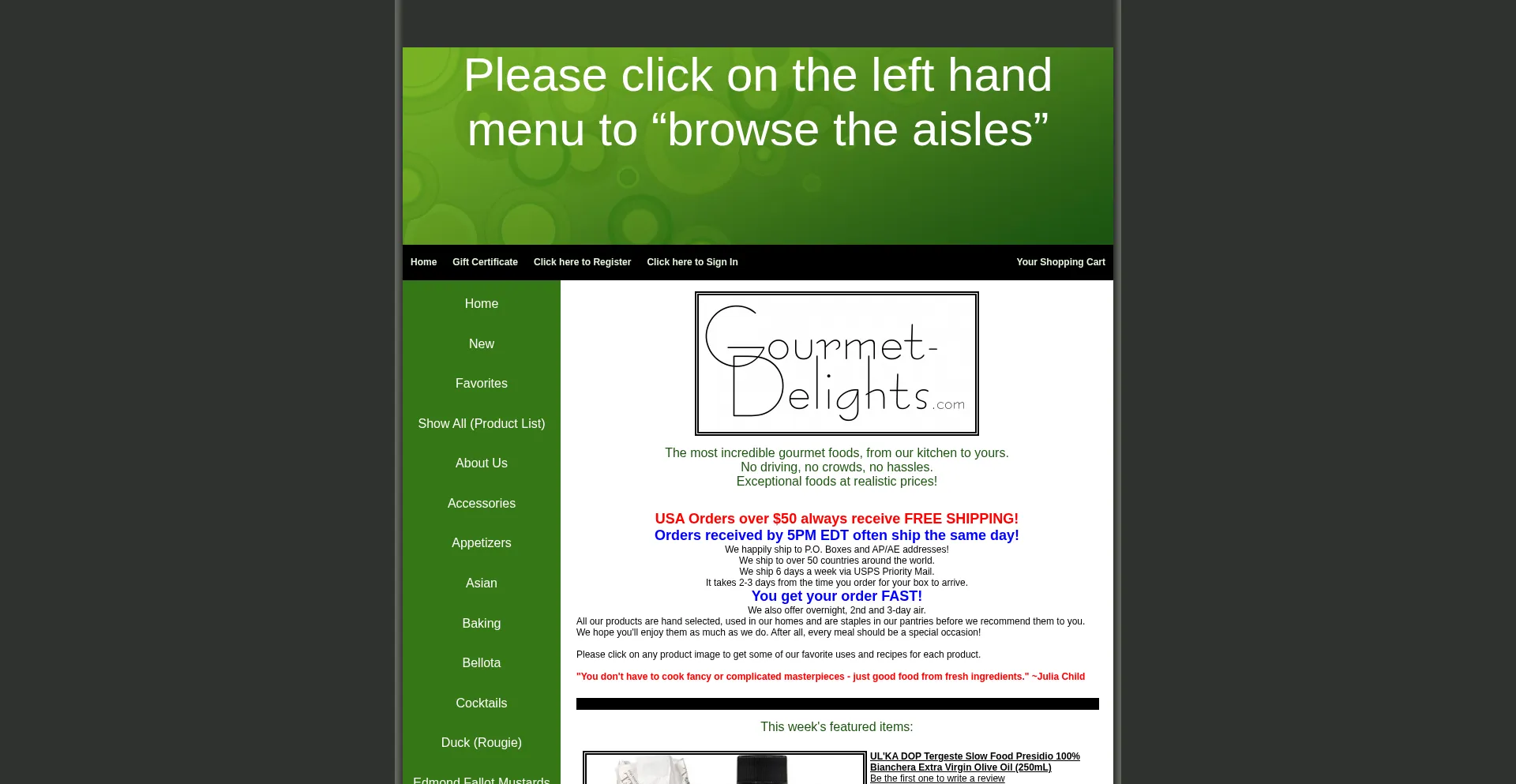 The most incredible gourmet foods, from our kitchen to yours. No driving, no crowds, no hassles. Exceptional foods at realistic prices! Orders over $50 receive FREE SHIPPING