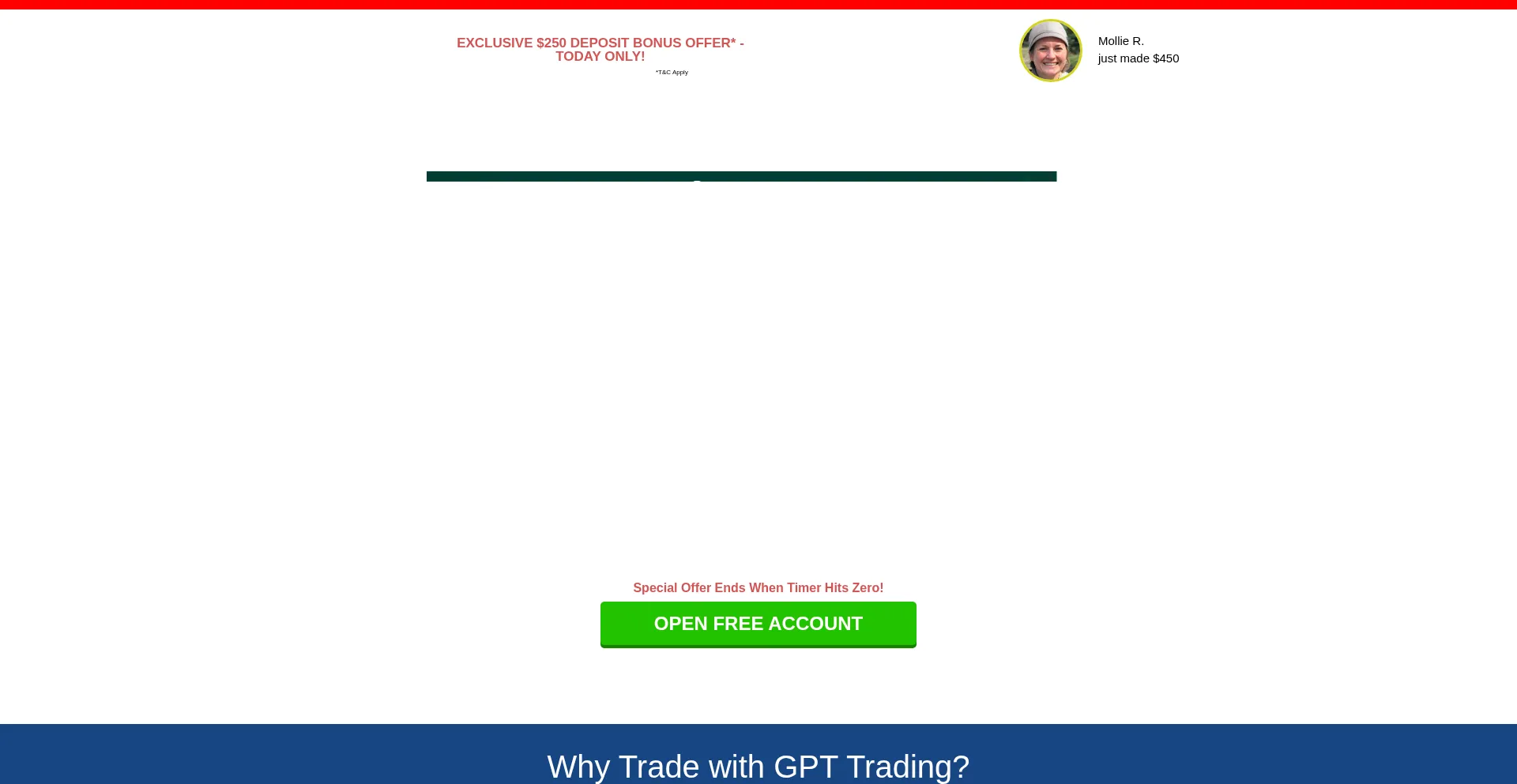 GPT Trading is an automated trading platform using state-of-the-art algorithm to help you win the market. Sign-up today to get $250 deposit bonus.