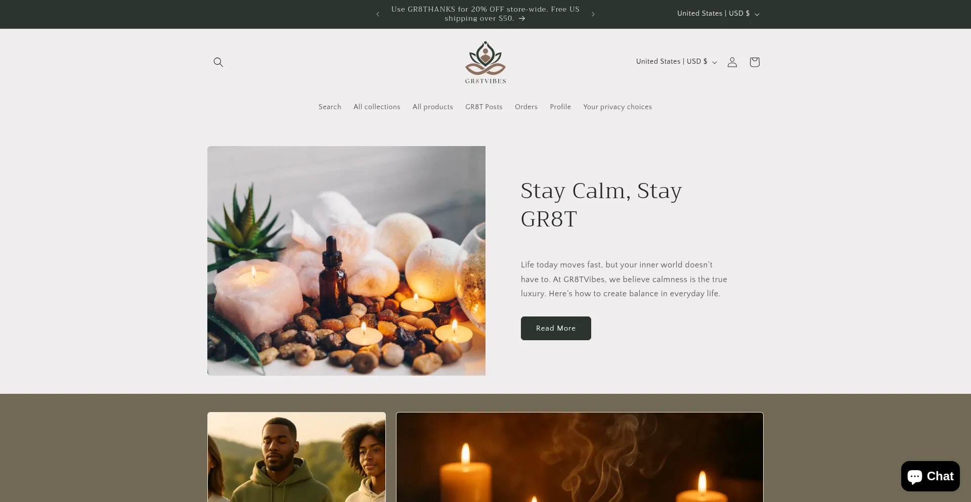 “GR8TVibes offers premium candles, incense, apparel, and lifestyle goods designed to bring calm, luxury, and positive energy into your everyday rituals.”