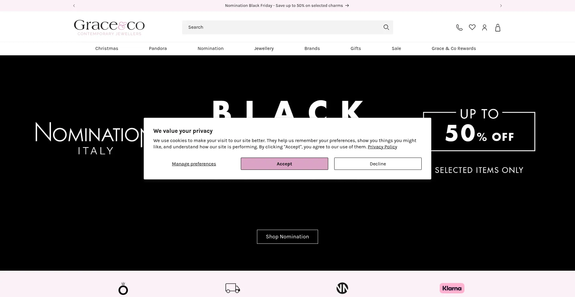 The website implements cookie consent mechanisms in compliance with privacy regulations such as GDPR or CCPA. This demonstrates that graceandcojewellery.co.uk adheres to data protection standards and provides users with control over personal data collection practices.