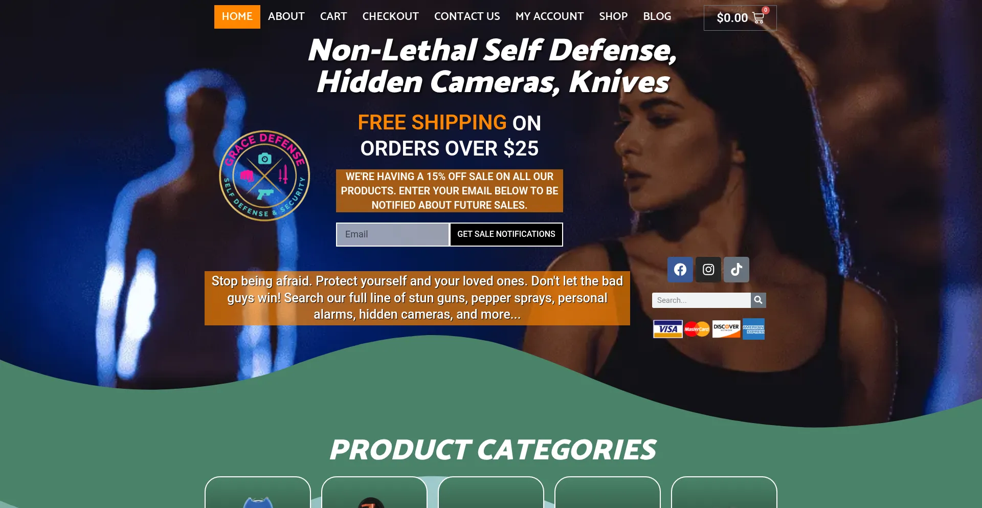 Analysis indicates that gracedefense.com operates as an e-commerce platform facilitating online transactions for goods or services. The website implements shopping cart functionality, payment processing systems, and product catalog features typical of commercial retail operations.