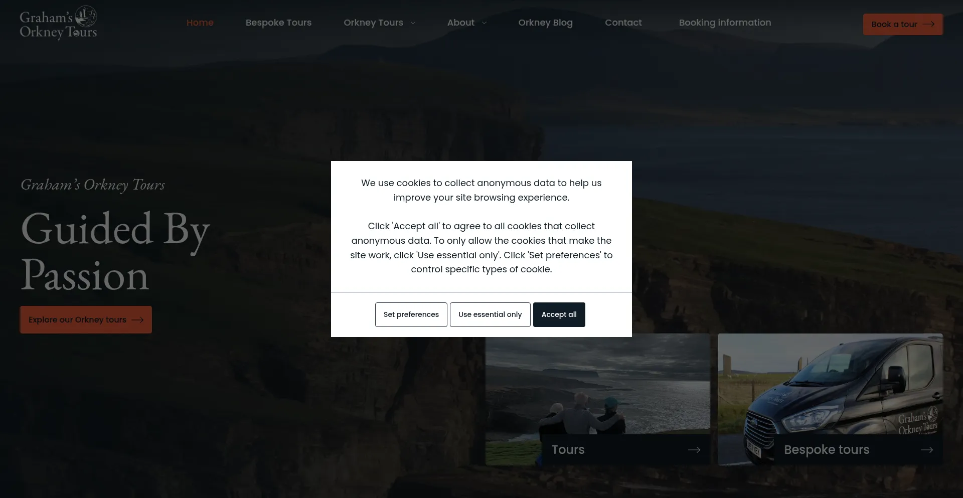 The website implements cookie consent mechanisms in compliance with privacy regulations such as GDPR or CCPA. This demonstrates that grahamsorkneytours.com adheres to data protection standards and provides users with control over personal data collection practices.