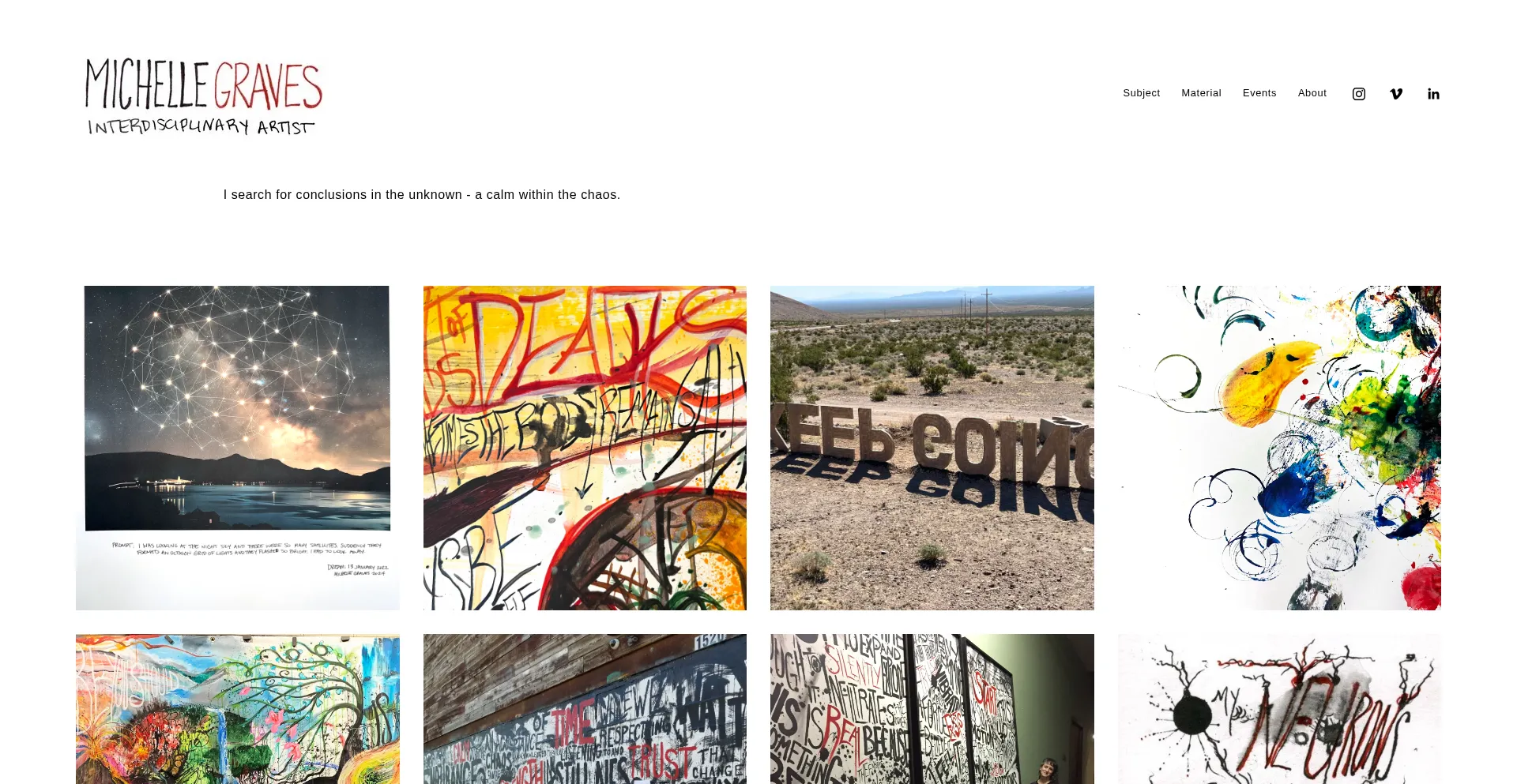 Michelle Graves is an interdisciplinary artist who searches for conclusion in the unknown - a calm within the chaos.