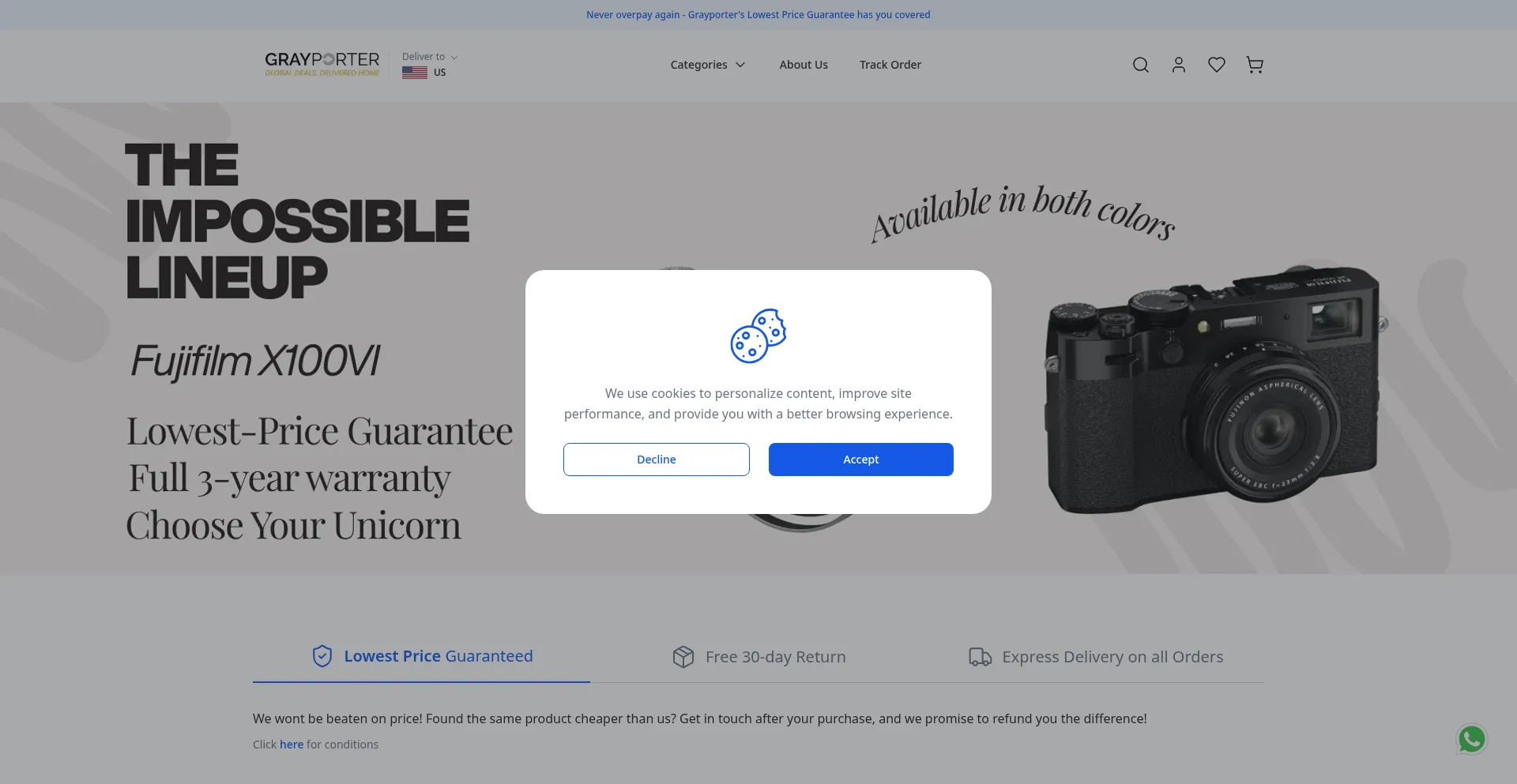 The website implements cookie consent mechanisms in compliance with privacy regulations such as GDPR or CCPA. This demonstrates that grayporter.com adheres to data protection standards and provides users with control over personal data collection practices.