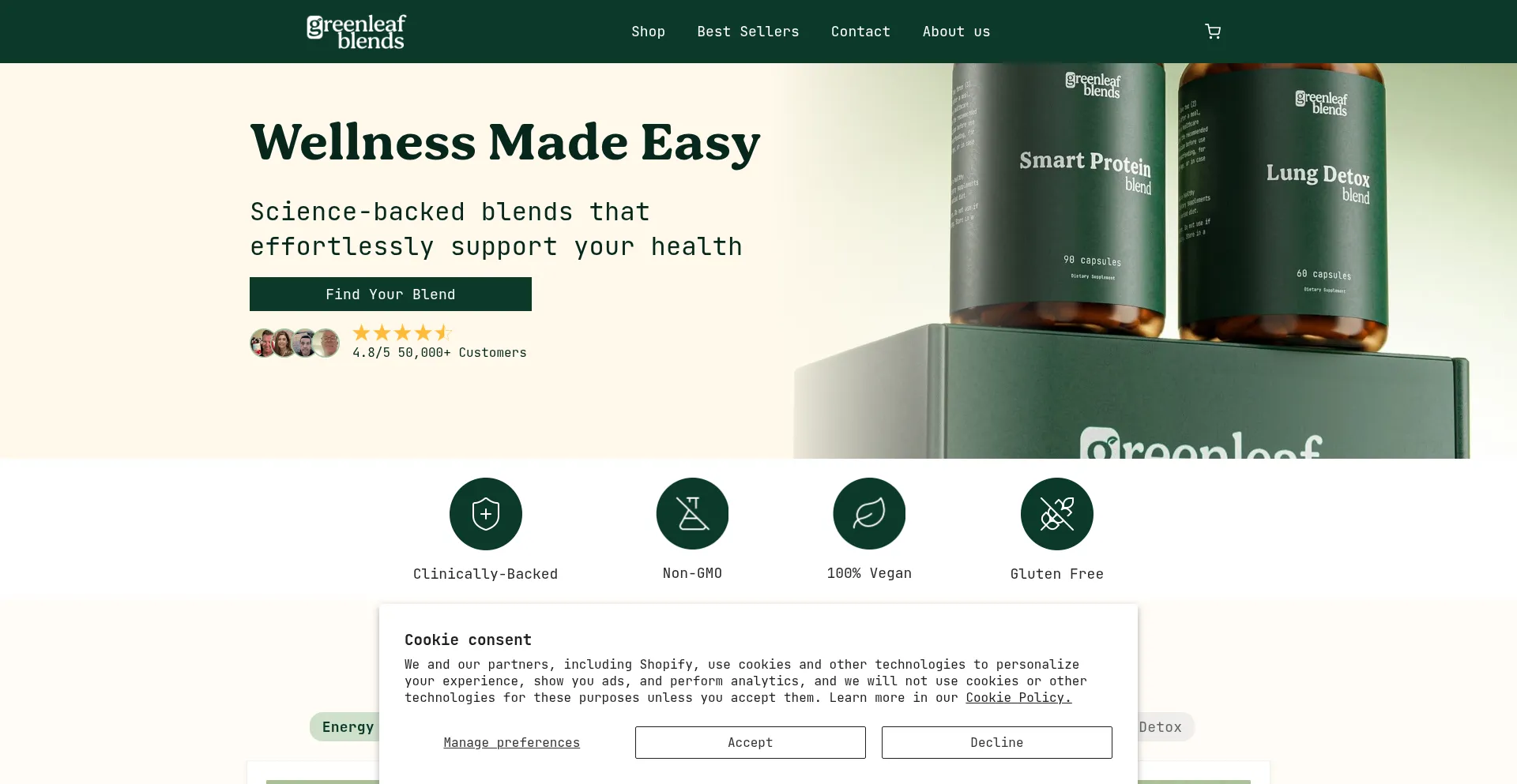 Our analyzer determines that website greenleaf-blends.nl is using Shopify CMS. Shopify is a popular e-commerce platform, powering around 4.4% of websites globally.