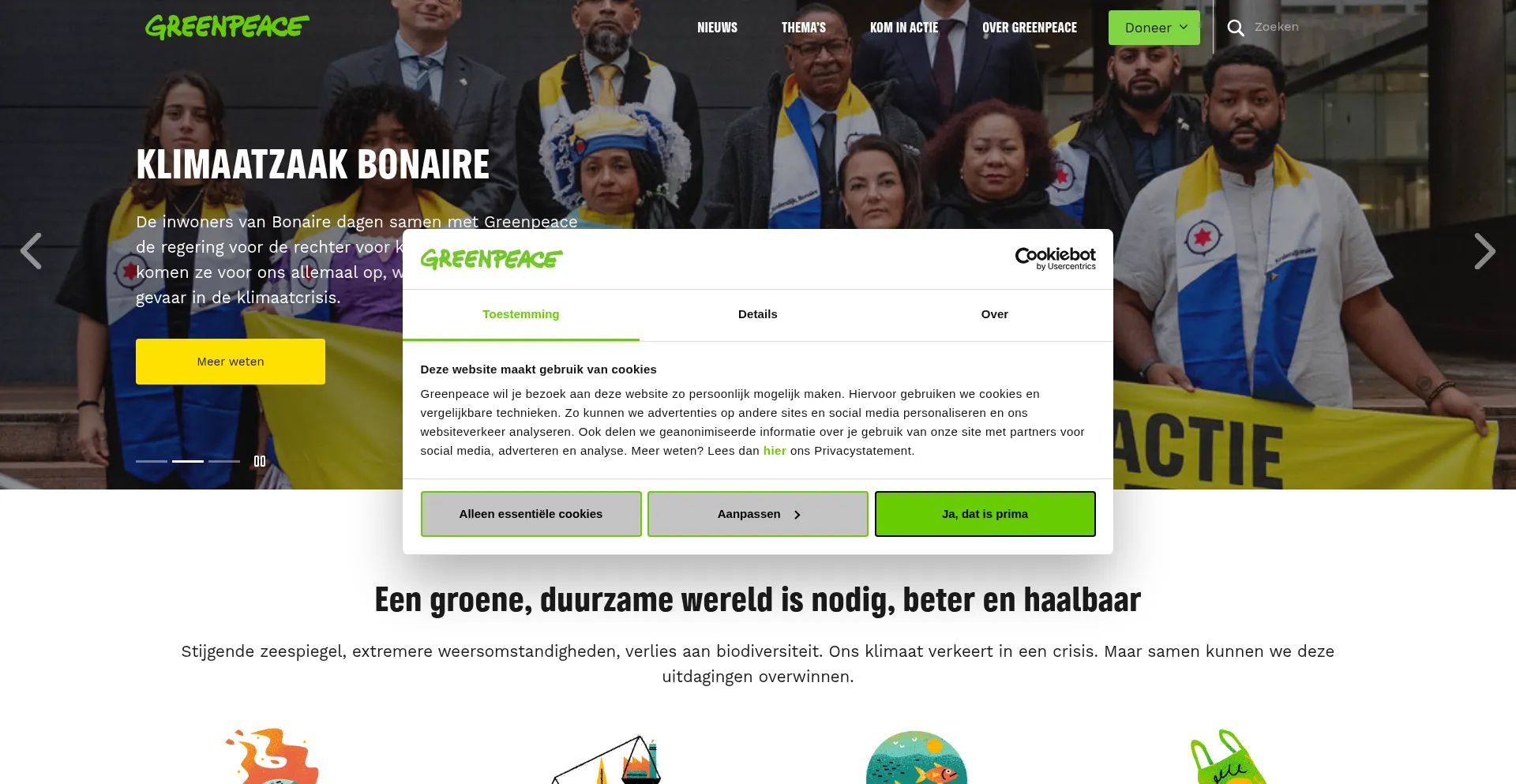 The website implements cookie consent mechanisms in compliance with privacy regulations such as GDPR or CCPA. This demonstrates that greenpeace.nl adheres to data protection standards and provides users with control over personal data collection practices.