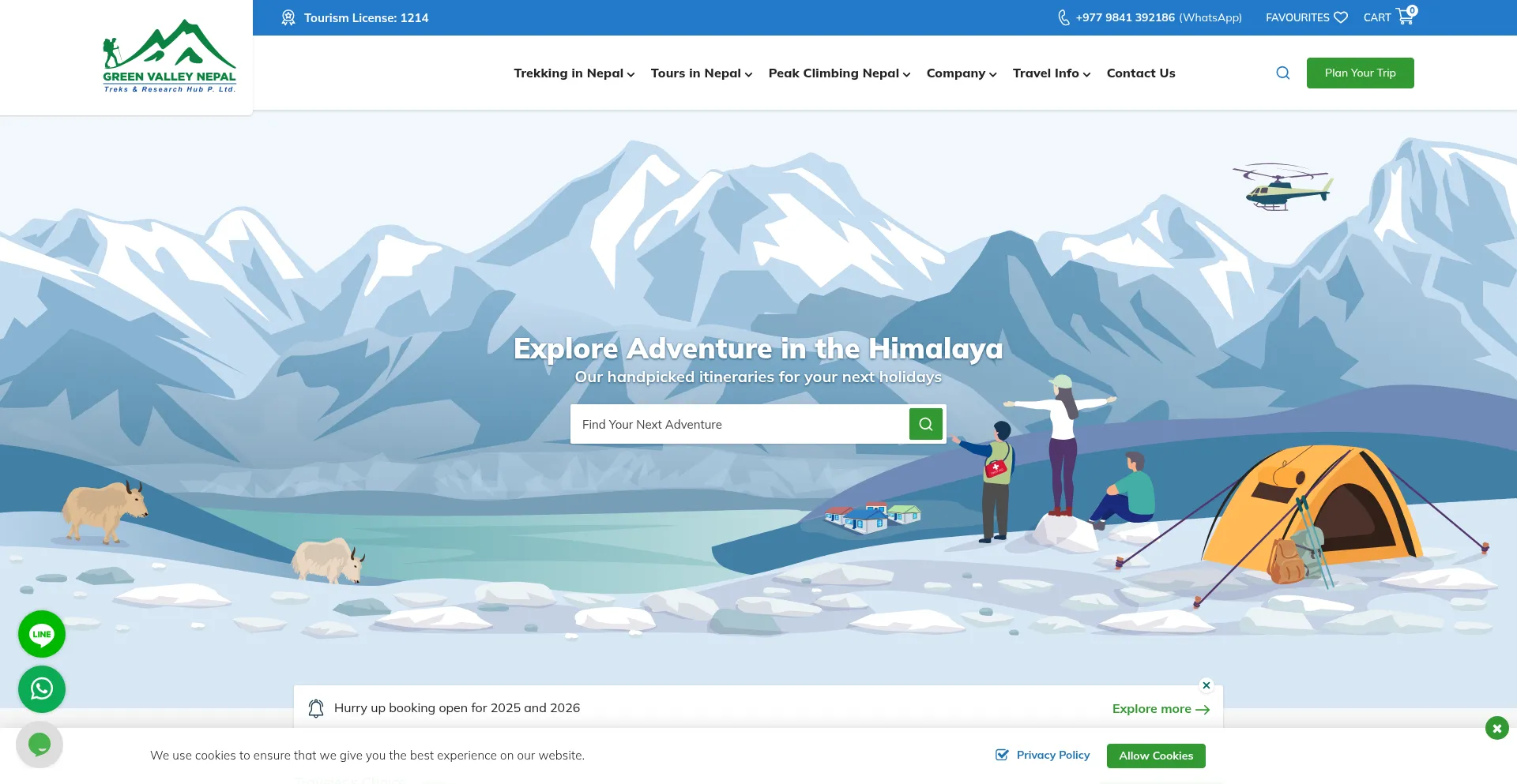The website implements cookie consent mechanisms in compliance with privacy regulations such as GDPR or CCPA. This demonstrates that greenvalleynepaltreks.com adheres to data protection standards and provides users with control over personal data collection practices.