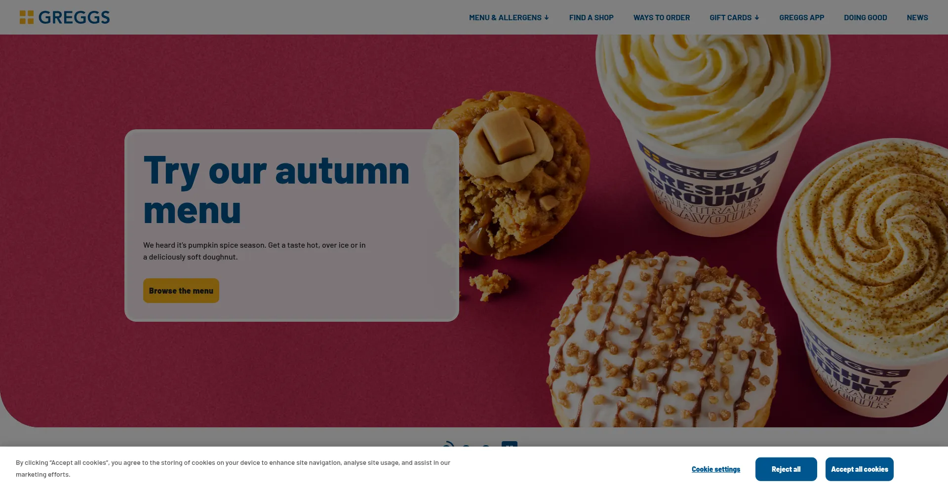 The website implements cookie consent mechanisms in compliance with privacy regulations such as GDPR or CCPA. This demonstrates that greggs.co.uk adheres to data protection standards and provides users with control over personal data collection practices.