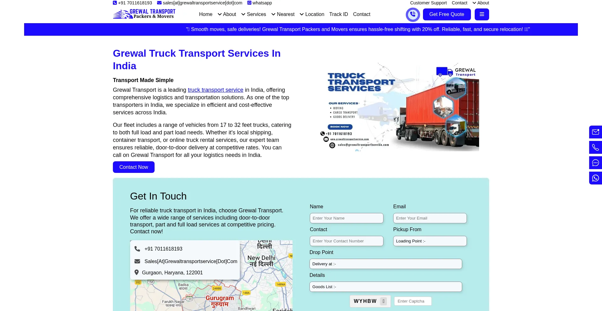 Grewal Transport Packers and Movers Services in India | Truck Transporter India