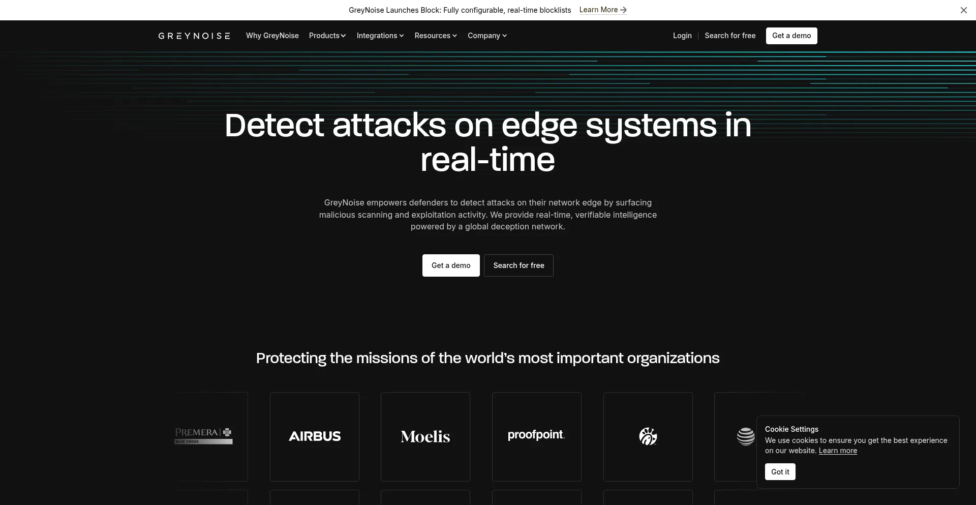 The website implements cookie consent mechanisms in compliance with privacy regulations such as GDPR or CCPA. This demonstrates that greynoise.io adheres to data protection standards and provides users with control over personal data collection practices.