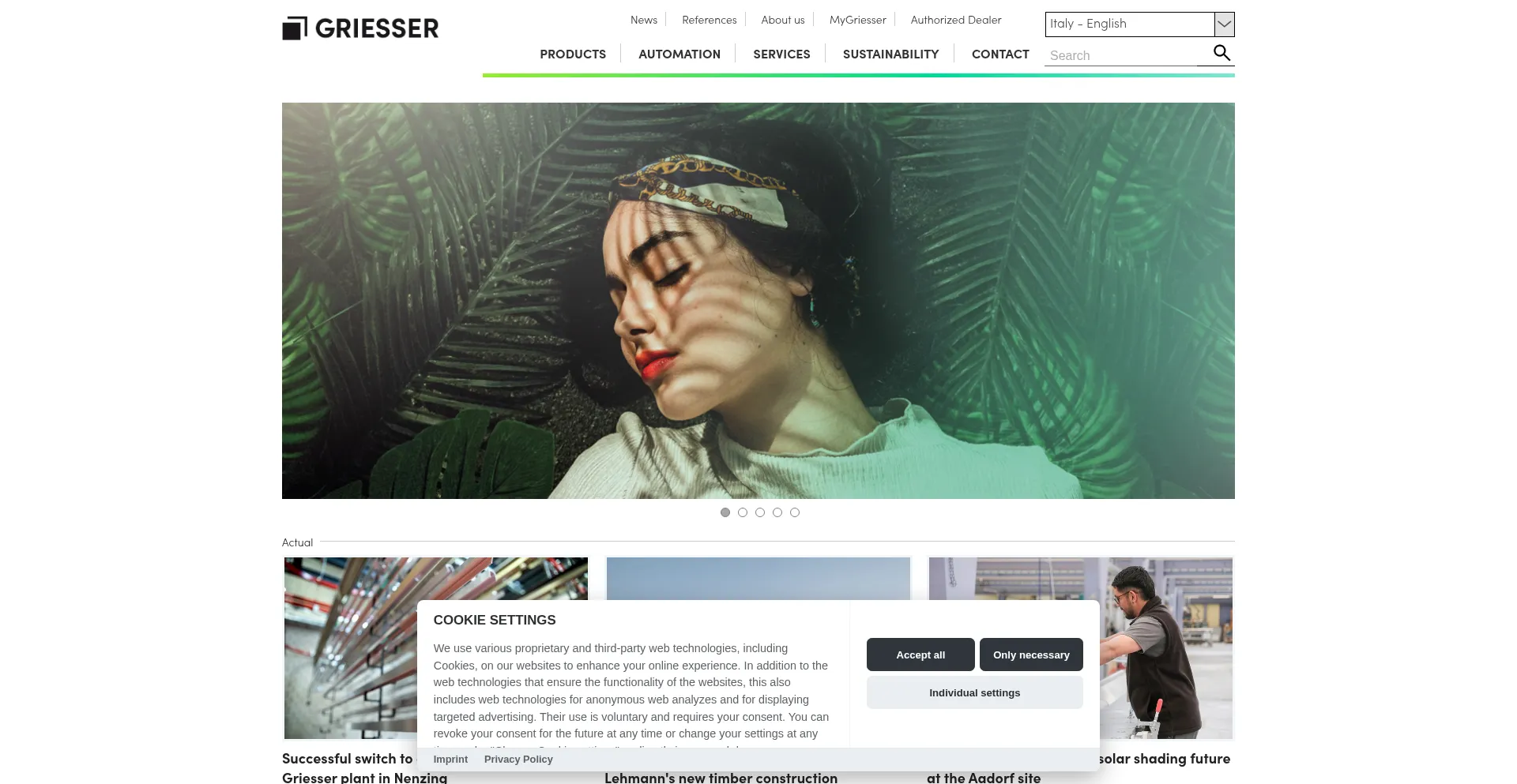 The website implements cookie consent mechanisms in compliance with privacy regulations such as GDPR or CCPA. This demonstrates that griesser.it adheres to data protection standards and provides users with control over personal data collection practices.