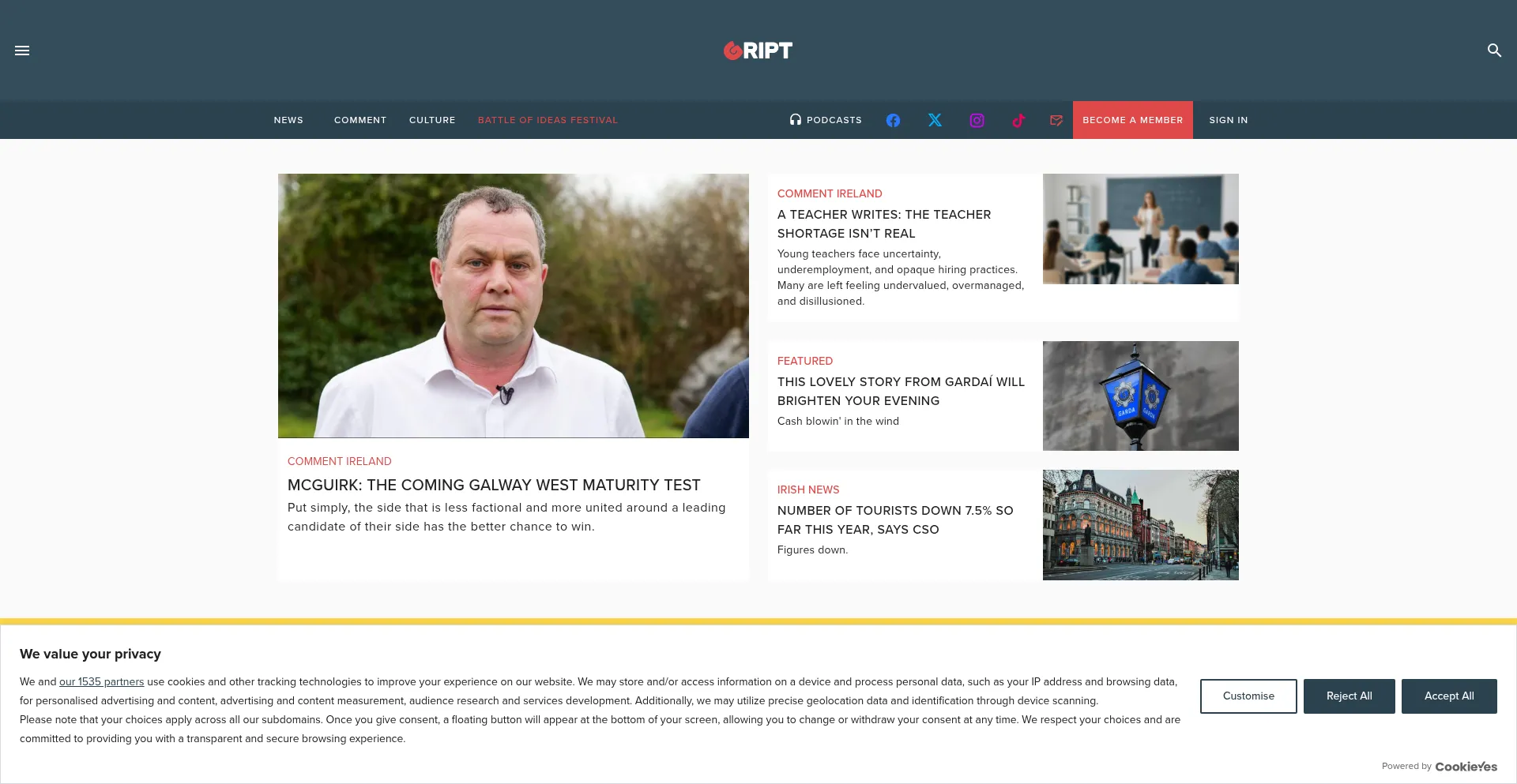 The website implements cookie consent mechanisms in compliance with privacy regulations such as GDPR or CCPA. This demonstrates that gript.ie adheres to data protection standards and provides users with control over personal data collection practices.