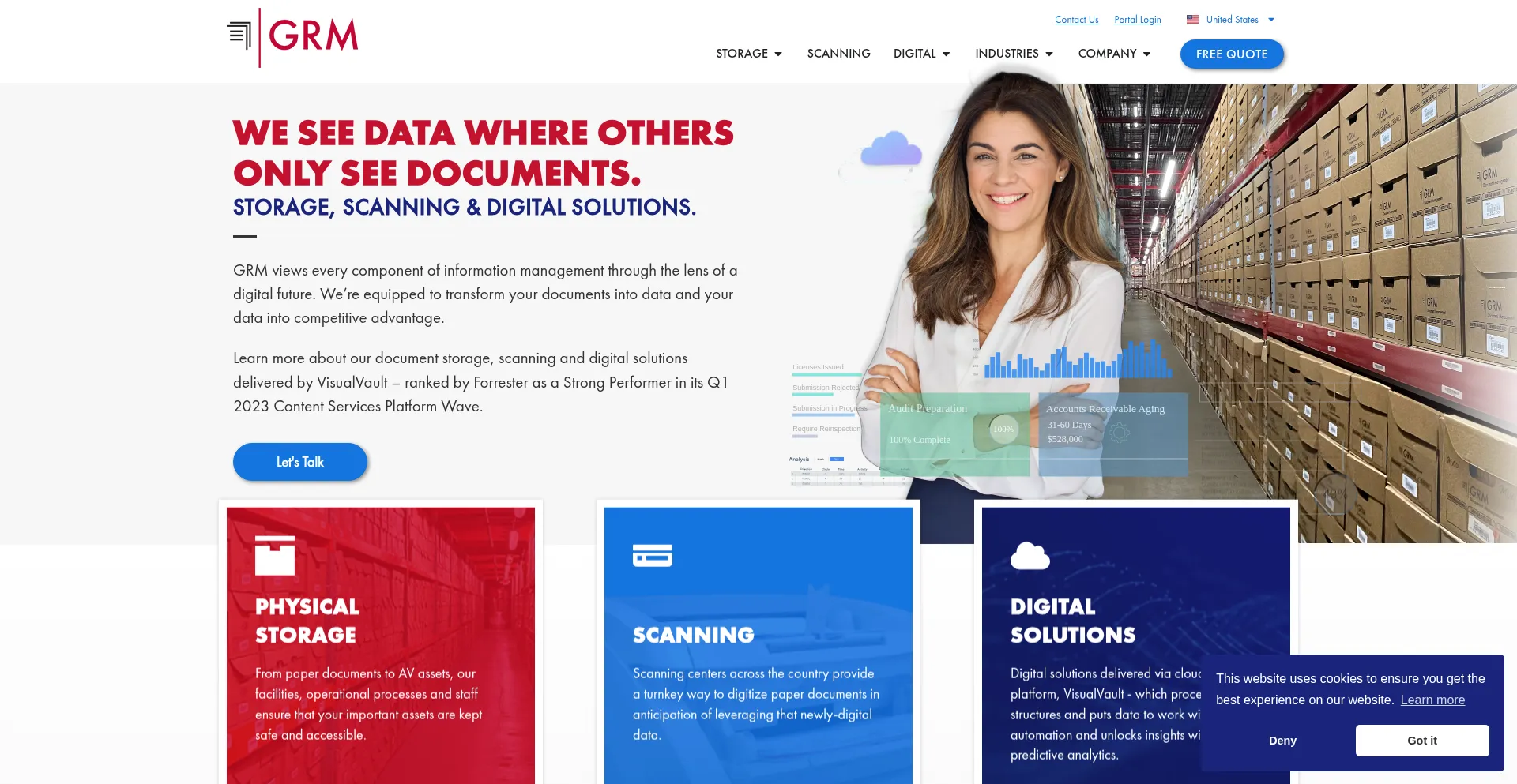 The website implements cookie consent mechanisms in compliance with privacy regulations such as GDPR or CCPA. This demonstrates that grmdocumentmanagement.com adheres to data protection standards and provides users with control over personal data collection practices.