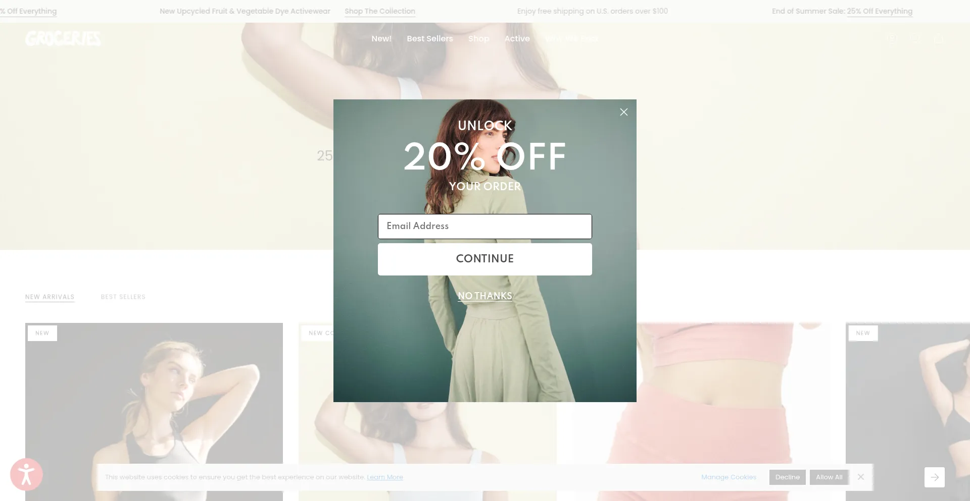 The website implements cookie consent mechanisms in compliance with privacy regulations such as GDPR or CCPA. This demonstrates that groceriesapparel.com adheres to data protection standards and provides users with control over personal data collection practices.