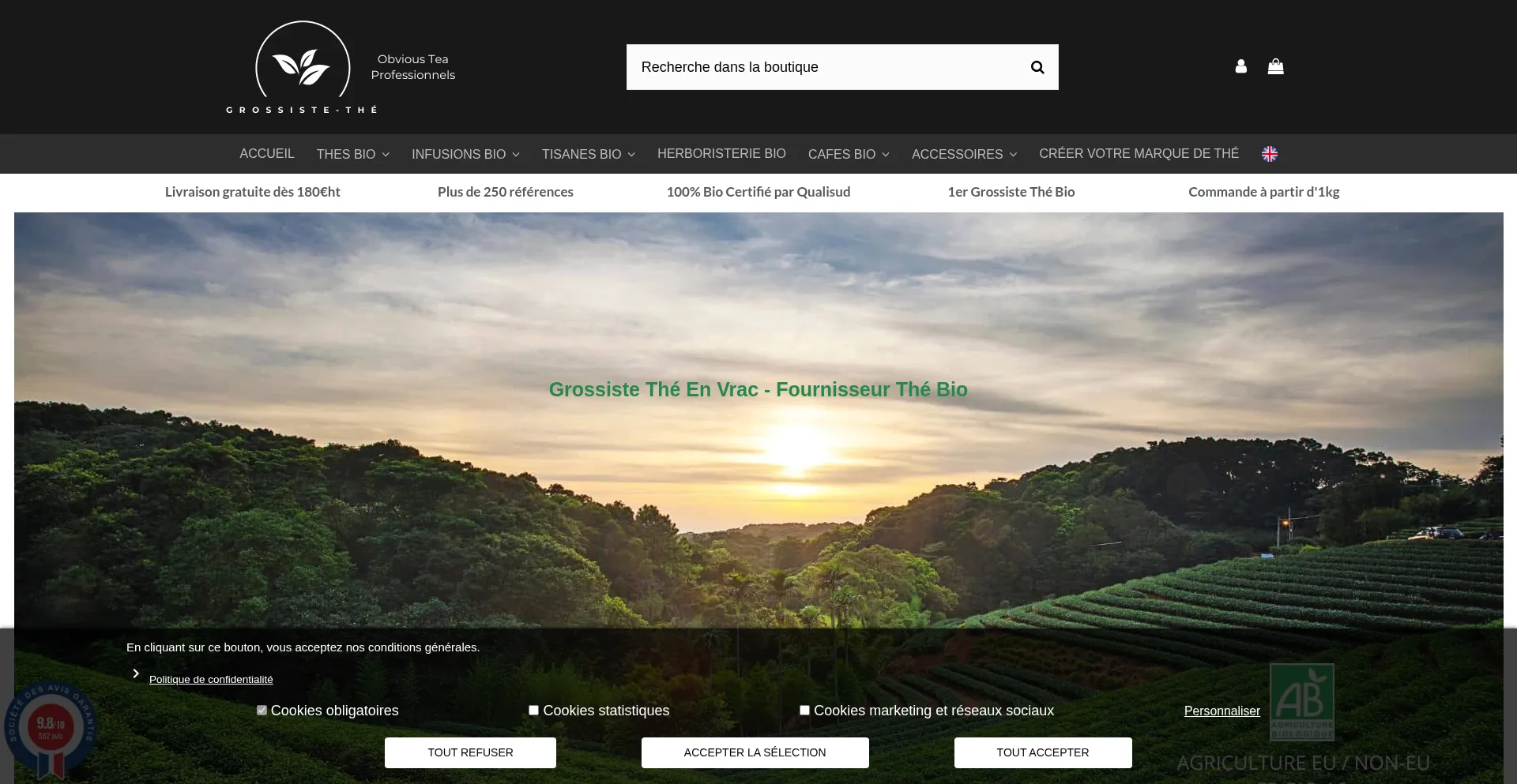 Grossiste Thé Bio - Le meilleur thé en gros France - Thé bio en gros - Thé bio au kilo - Fournisseur de thé bio