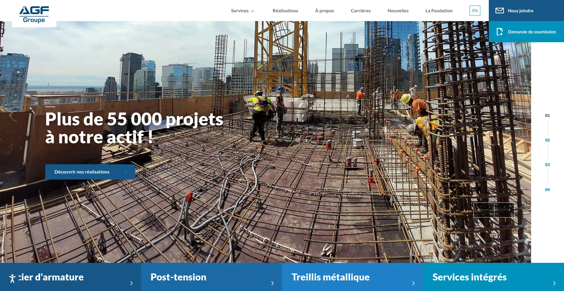Le Groupe AGF se spécialise dans la fourniture et la pose d’acier d’armature. Experts des projets résidentiels, commerciaux, de génie civil ou industriels.