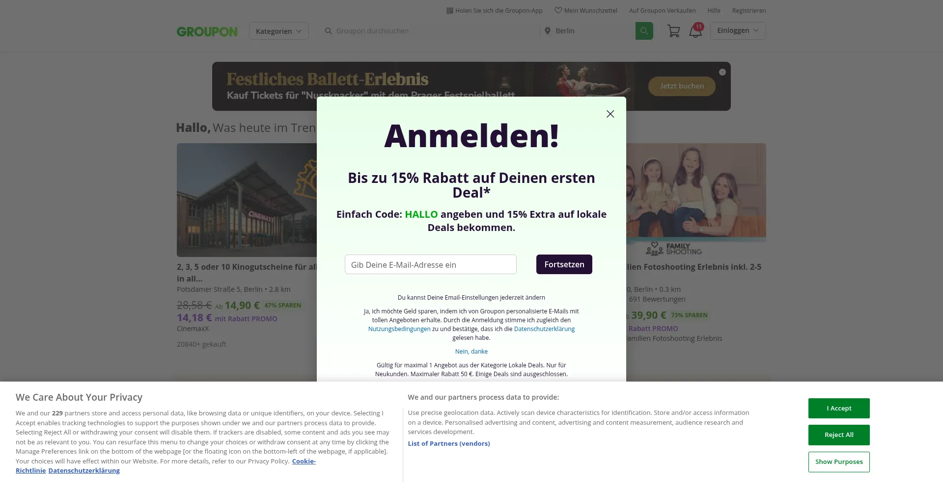 The groupon.de website implements data collection forms that may request personal information including names, email addresses, phone numbers, or other sensitive details. Users should verify the legitimacy of it and review privacy policies before submitting personal data.