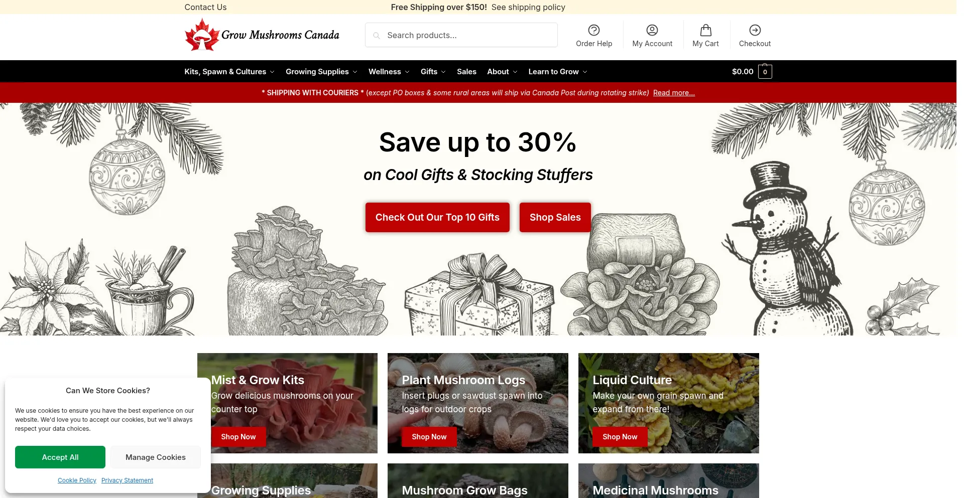 Analysis indicates that growmushroomscanada.ca operates as an e-commerce platform facilitating online transactions for goods or services. The website implements shopping cart functionality, payment processing systems, and product catalog features typical of commercial retail operations.