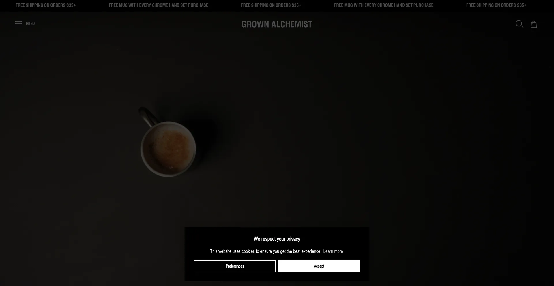 The website implements cookie consent mechanisms in compliance with privacy regulations such as GDPR or CCPA. This demonstrates that grownalchemist.com adheres to data protection standards and provides users with control over personal data collection practices.