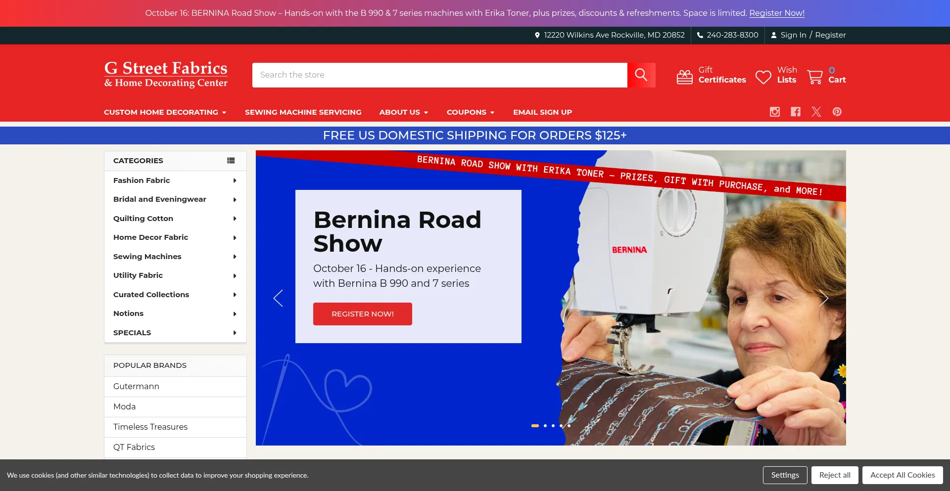 Shop G Street Fabrics — Since 1942, the trusted destination for quality apparel and quilting fabrics, home decor textiles, Bernina sewing machines and sewing notions.