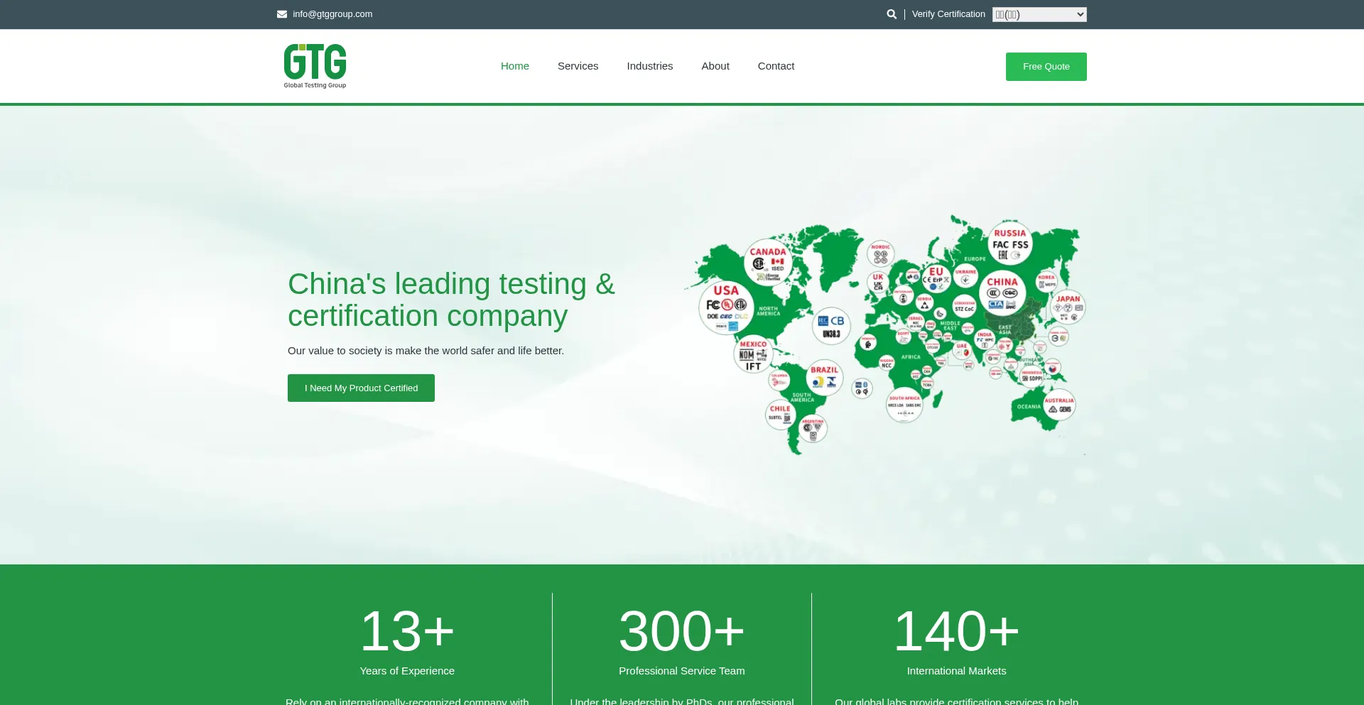 GTG is among the most respected and reputable testing, inspection and certification company in China and is accredited by world famous local and international certification bodi...