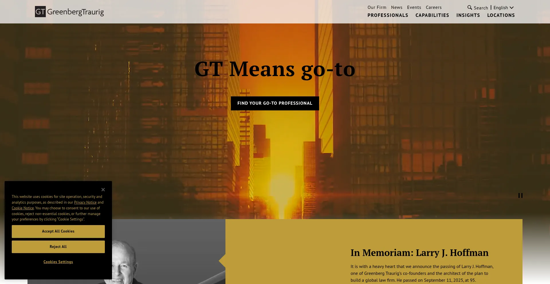 The website implements cookie consent mechanisms in compliance with privacy regulations such as GDPR or CCPA. This demonstrates that gtlaw.com adheres to data protection standards and provides users with control over personal data collection practices.