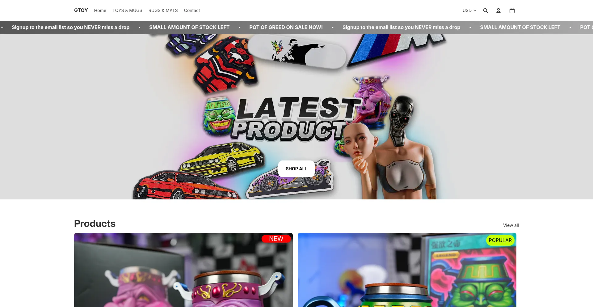 Our analyzer determines that website gtoy.store is using Shopify CMS. Shopify is a popular e-commerce platform, powering around 4.4% of websites globally.