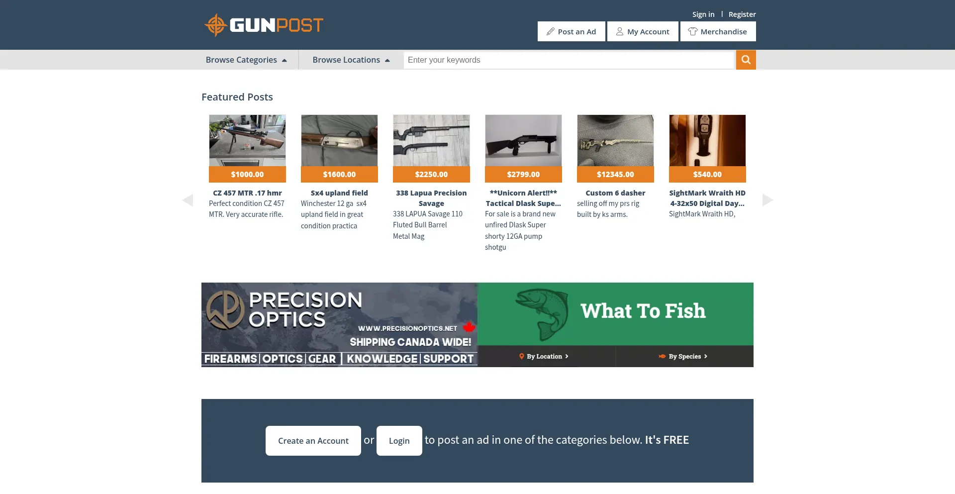 GUNPOST is a Canada-wide site for FREE buy & sell in firearms, archery & hunting gear. Best built & easiest site to use. The fastest growing community for classified ads.