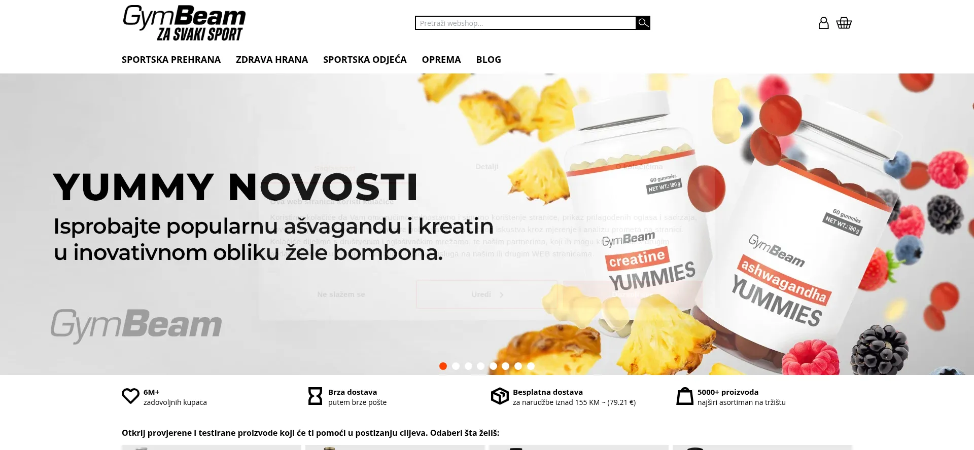 The website leverages popular product names and brands to attract traffic and generate user interest. These products may be offered through promotional campaigns or discount strategies designed to increase visitor engagement and conversion rates for gymbeam.ba.