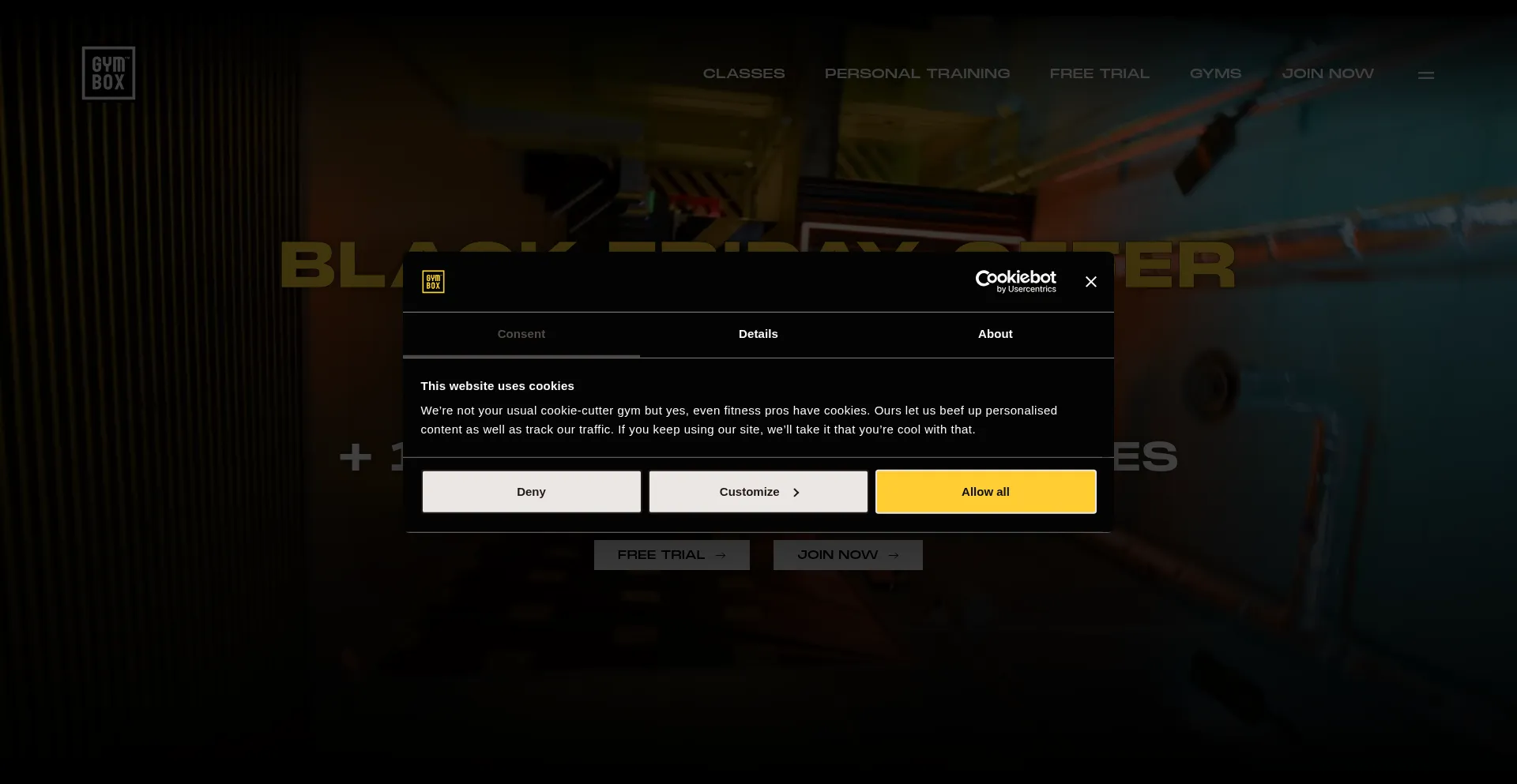 The website implements cookie consent mechanisms in compliance with privacy regulations such as GDPR or CCPA. This demonstrates that gymbox.com adheres to data protection standards and provides users with control over personal data collection practices.