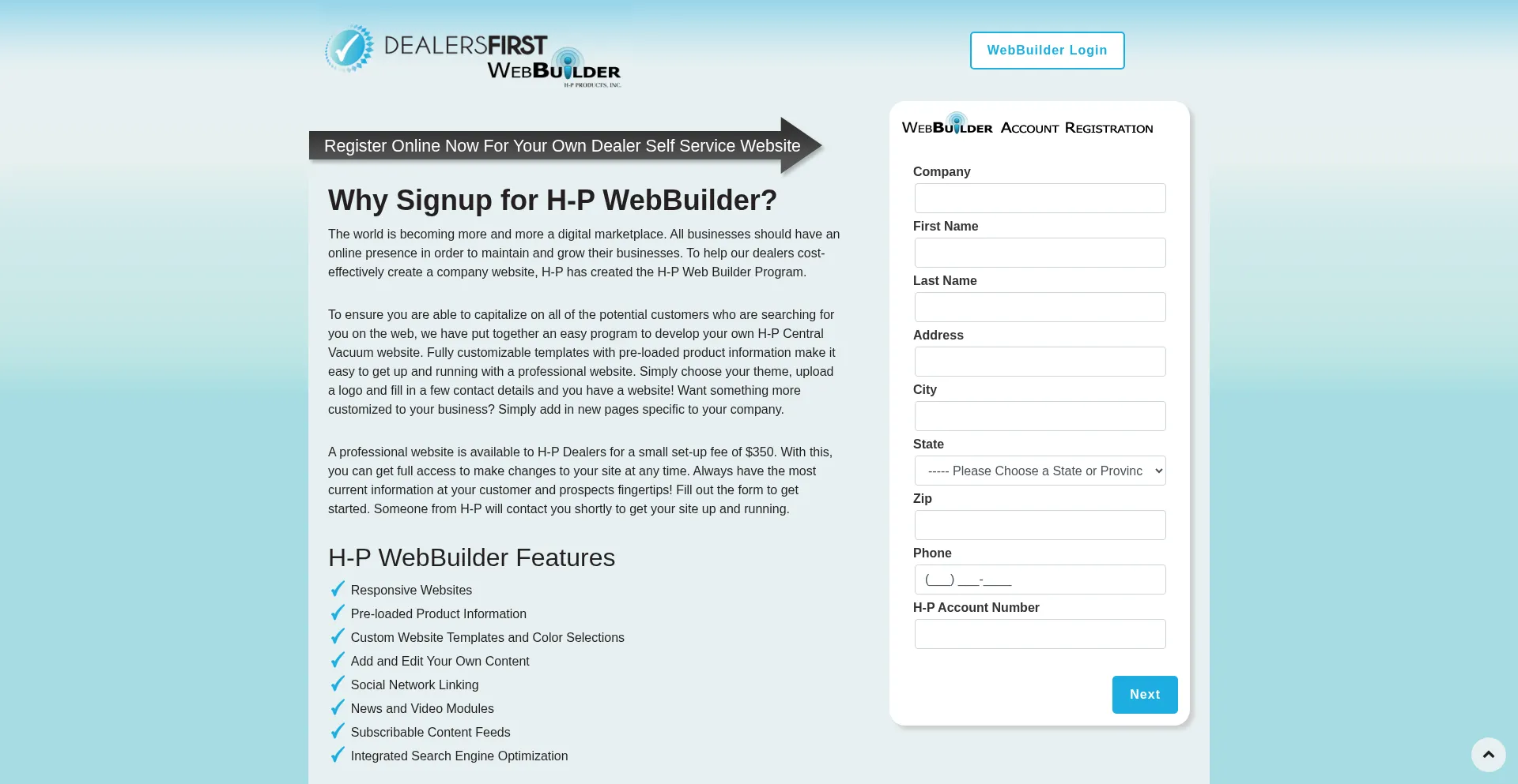 The h-pdealersites.com website implements data collection forms that may request personal information including names, email addresses, phone numbers, or other sensitive details. Users should verify the legitimacy of it and review privacy policies before submitting personal data.