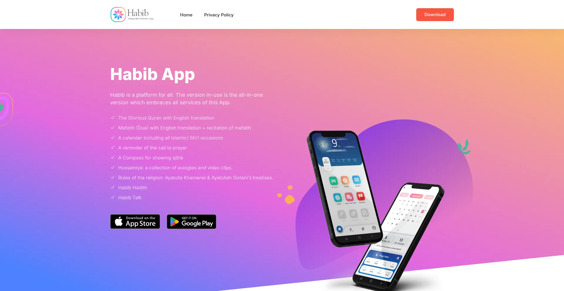 The habibapp.com website offers a mobile application for Android devices, indicating expanded platform presence beyond web-based services.