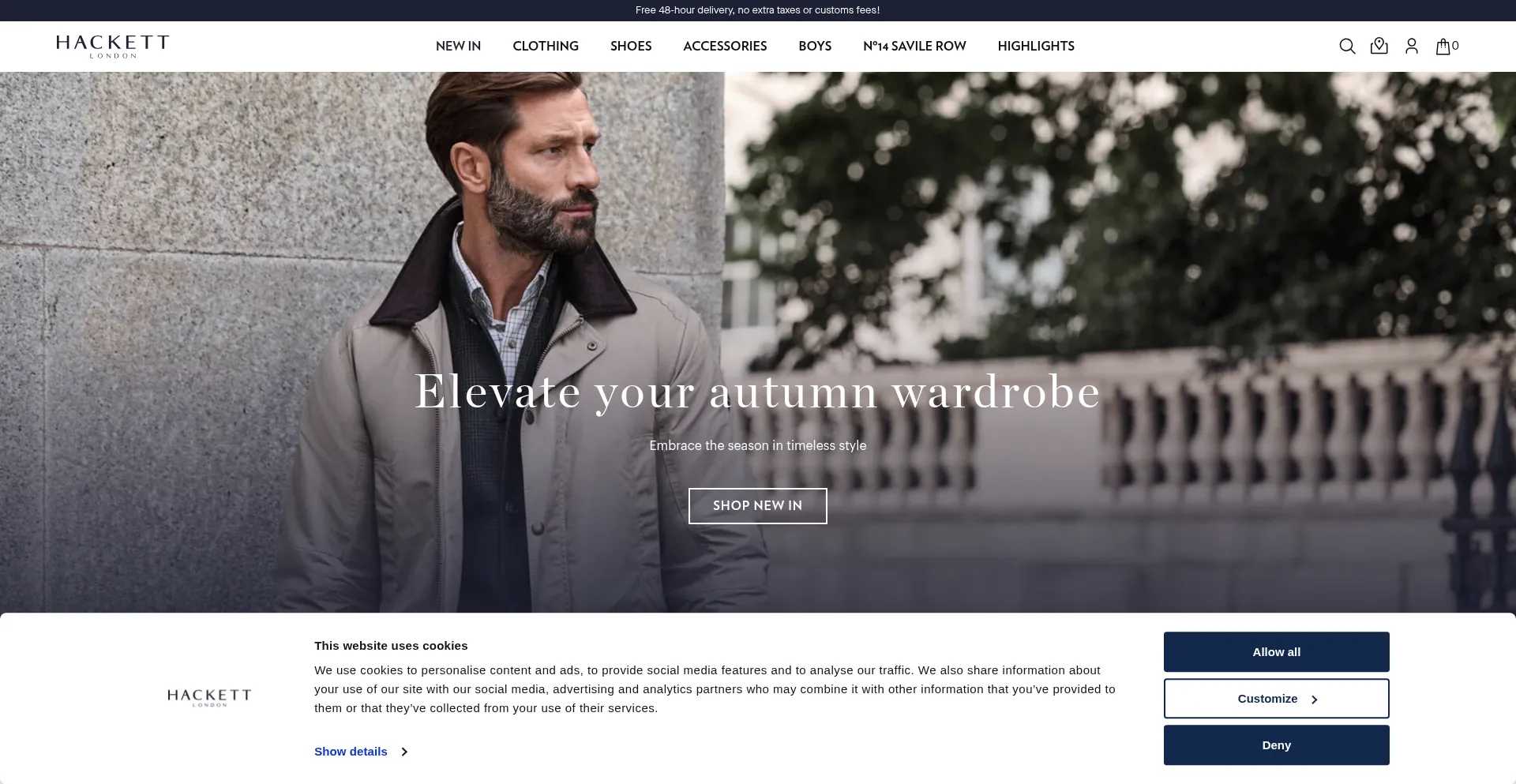 storelocator.hackett.com cdnjs.cloudflare.com widget.trustpilot.com utils.global-e.com pagead2.googlesyndication.com www.cookiebot.com www.amazon.com www.monetate.com docs.contentsquare.com hackett.com +37 more