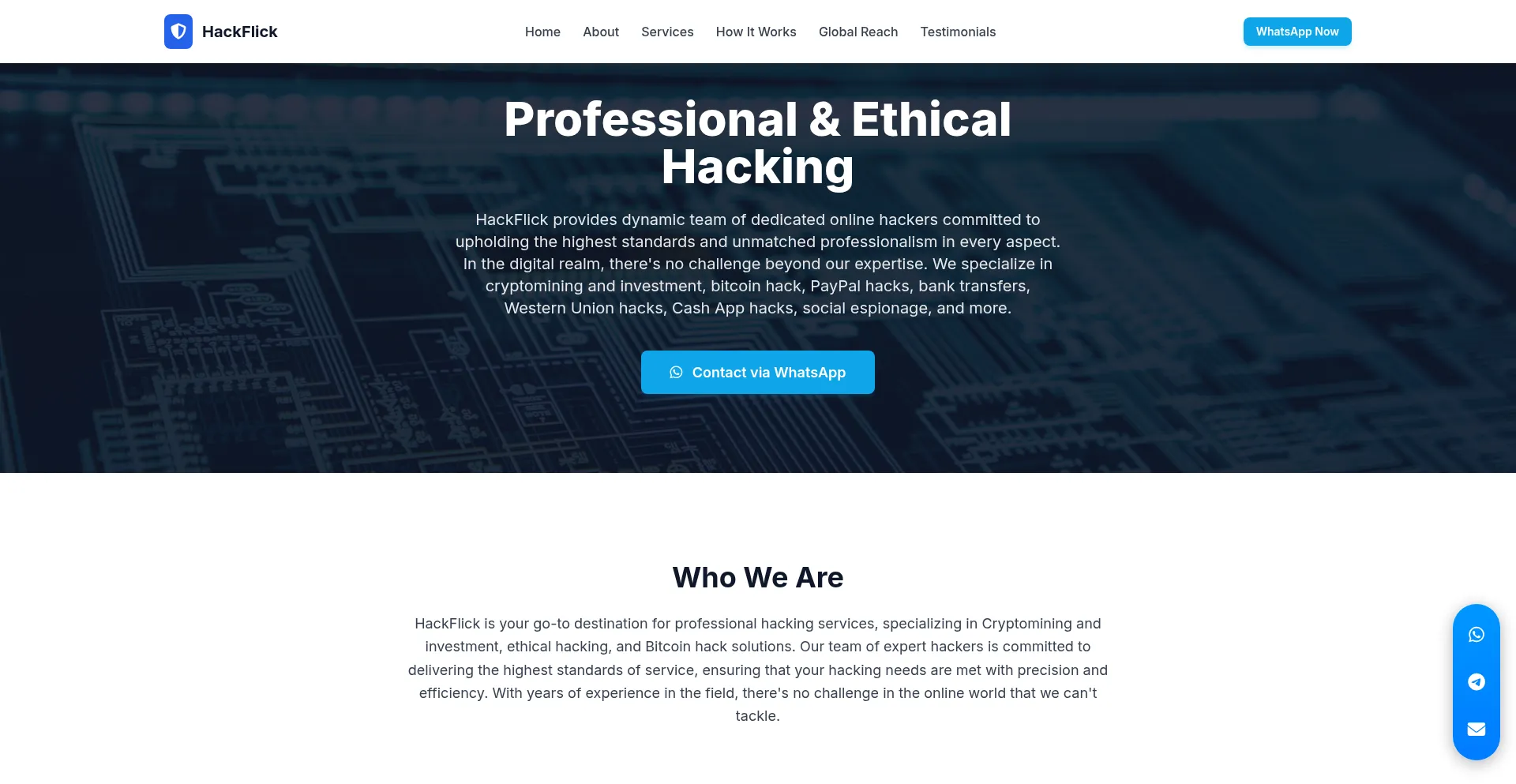 HackFlick – Licensed digital recovery specialists for crypto scams, PayPal fraud, hacked accounts, bank theft, Western Union fraud, and digital forensics. 24/7 support via Wha...