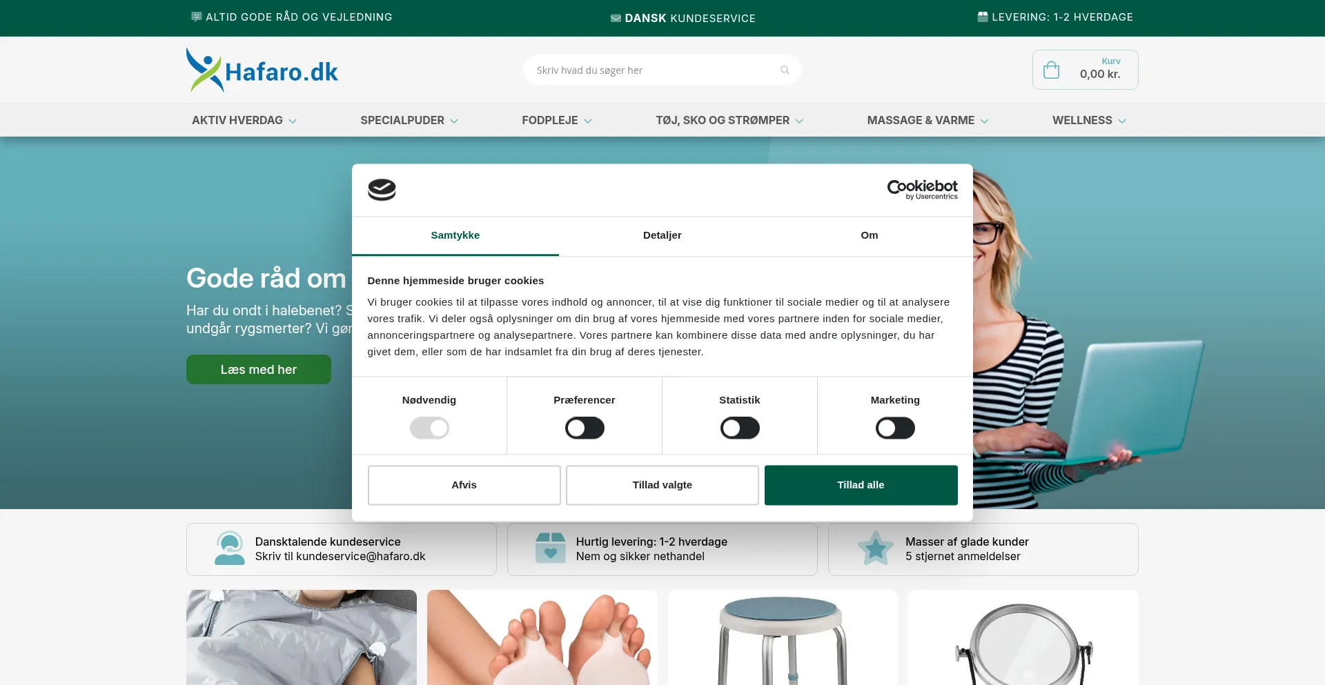 Analysis indicates that hafaro.dk operates as an e-commerce platform facilitating online transactions for goods or services. The website implements shopping cart functionality, payment processing systems, and product catalog features typical of commercial retail operations.