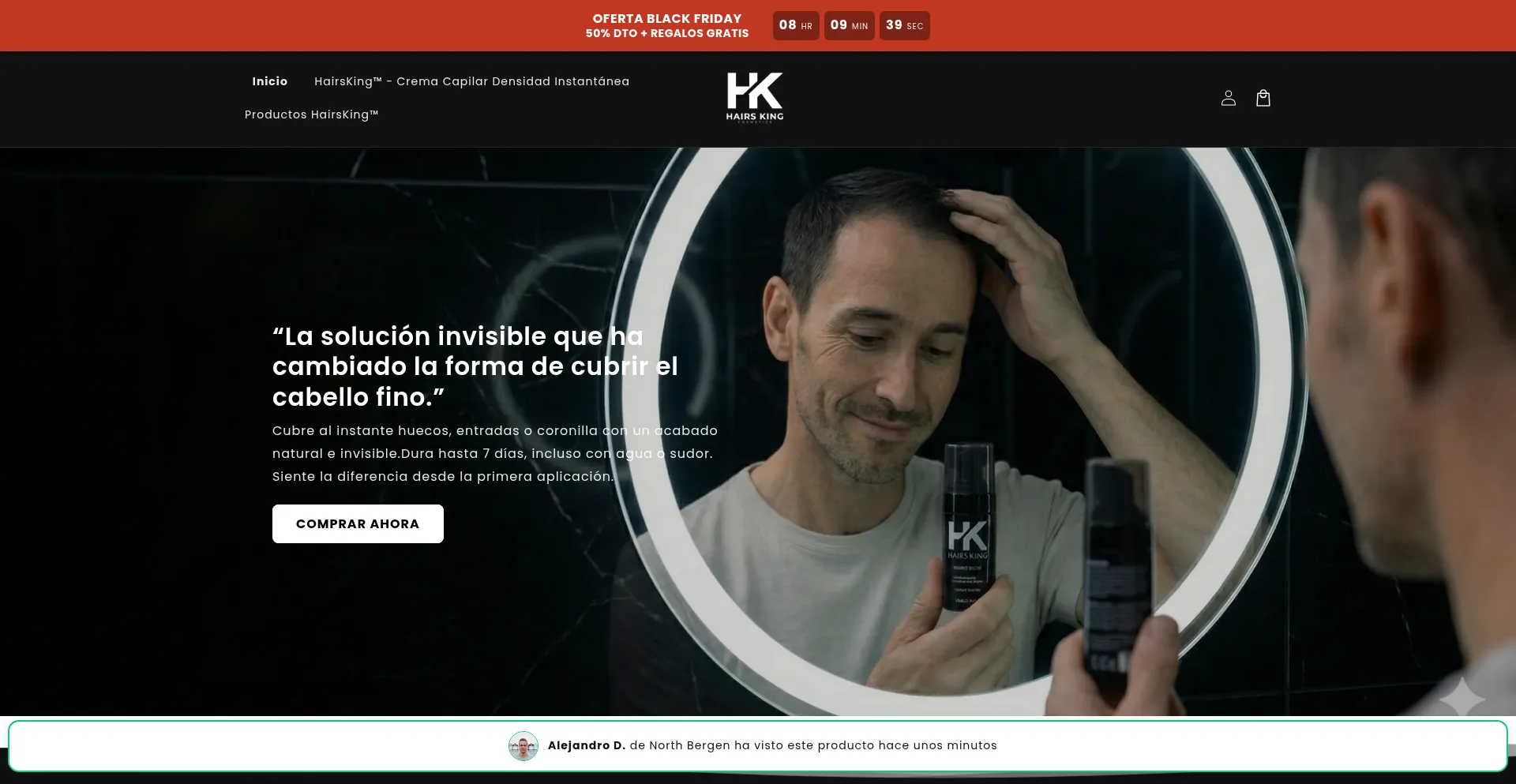 Recupera la densidad y confianza con Hairs King, la crema capilar española que cubre claros, resiste al agua y dura hasta 7 días con resultados naturales.