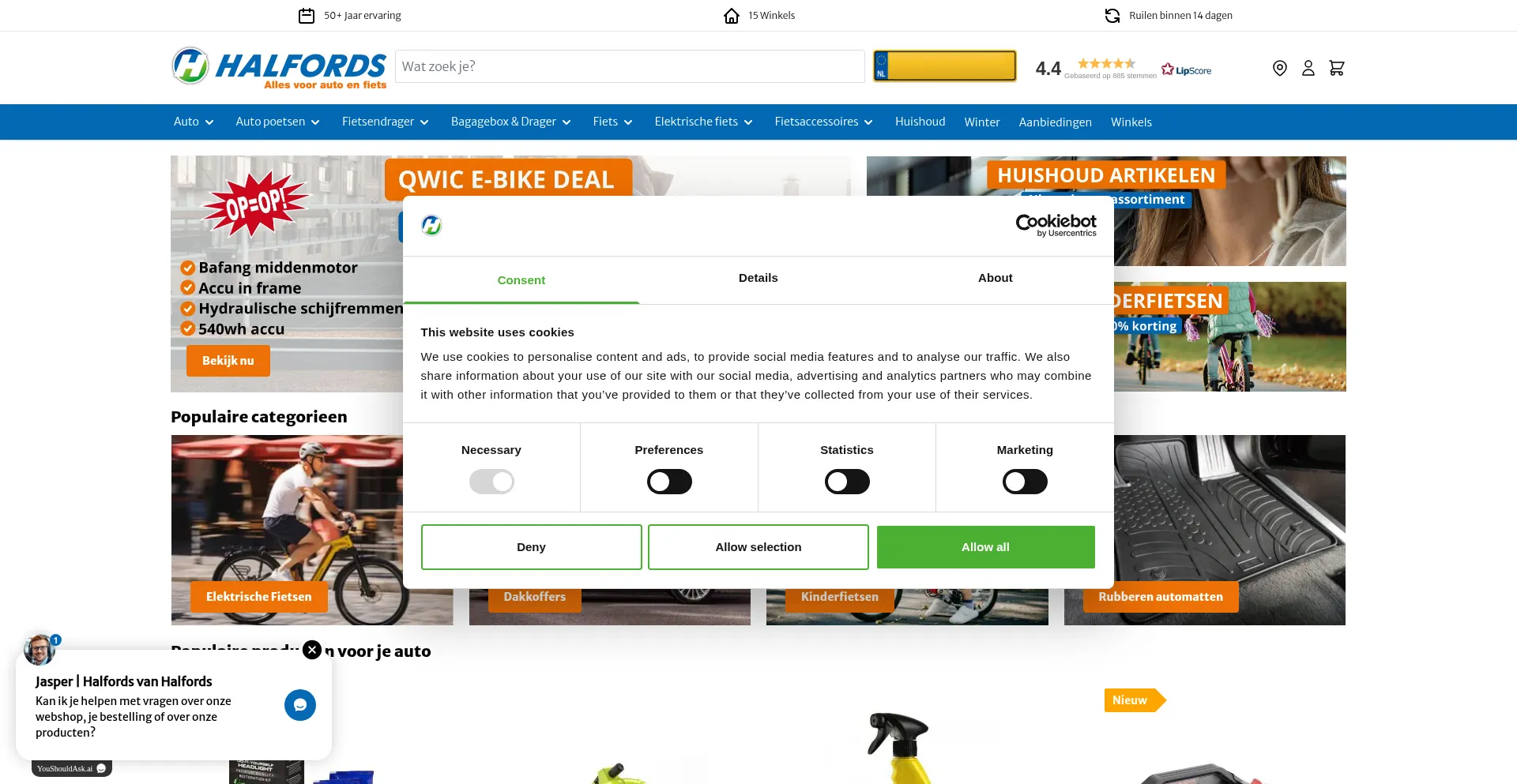 The website implements cookie consent mechanisms in compliance with privacy regulations such as GDPR or CCPA. This demonstrates that halfords.nl adheres to data protection standards and provides users with control over personal data collection practices.