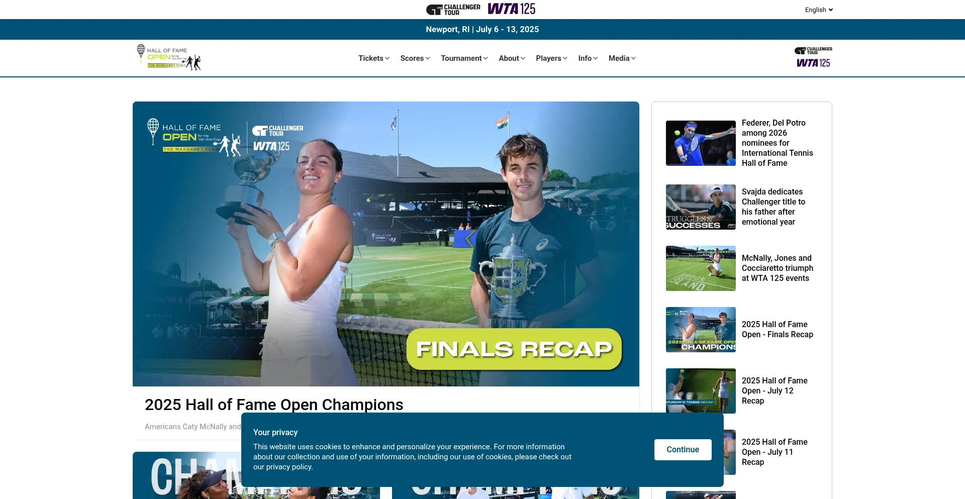 Experience world-class tennis in Newport, Rhode Island at the Hall of Fame Open—an ATP Challenger & WTA 125 event. Tickets, schedule & more.