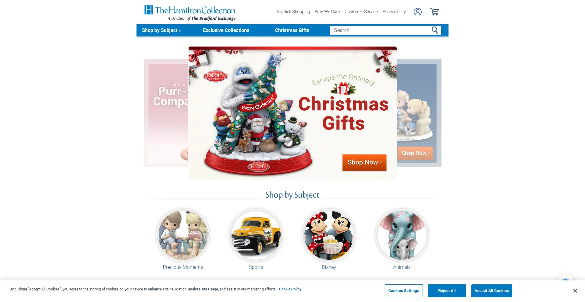 The website implements cookie consent mechanisms in compliance with privacy regulations such as GDPR or CCPA. This demonstrates that hamiltoncollection.com adheres to data protection standards and provides users with control over personal data collection practices.
