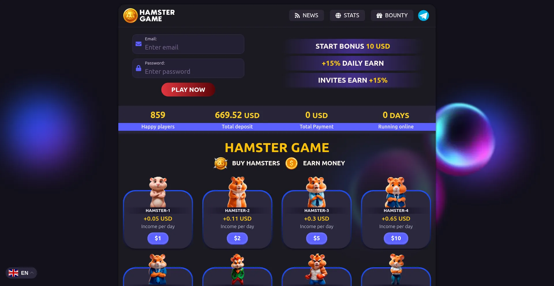 Hamster Combo - online game with real money withdrawal. Start bonus 10 USD free