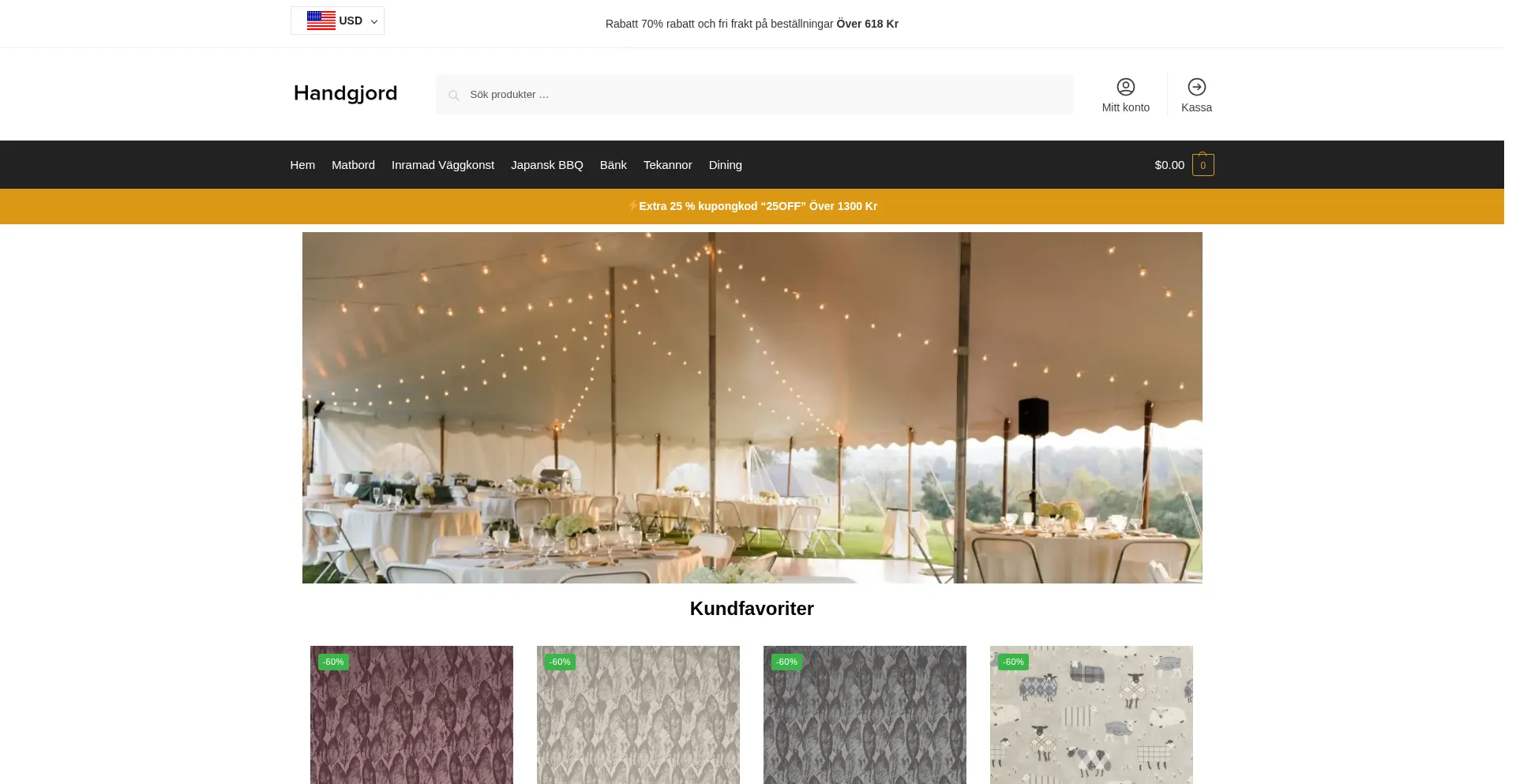 Analysis indicates that handgjordbelysning.com operates as an e-commerce platform facilitating online transactions for goods or services. The website implements shopping cart functionality, payment processing systems, and product catalog features typical of commercial retail operations.