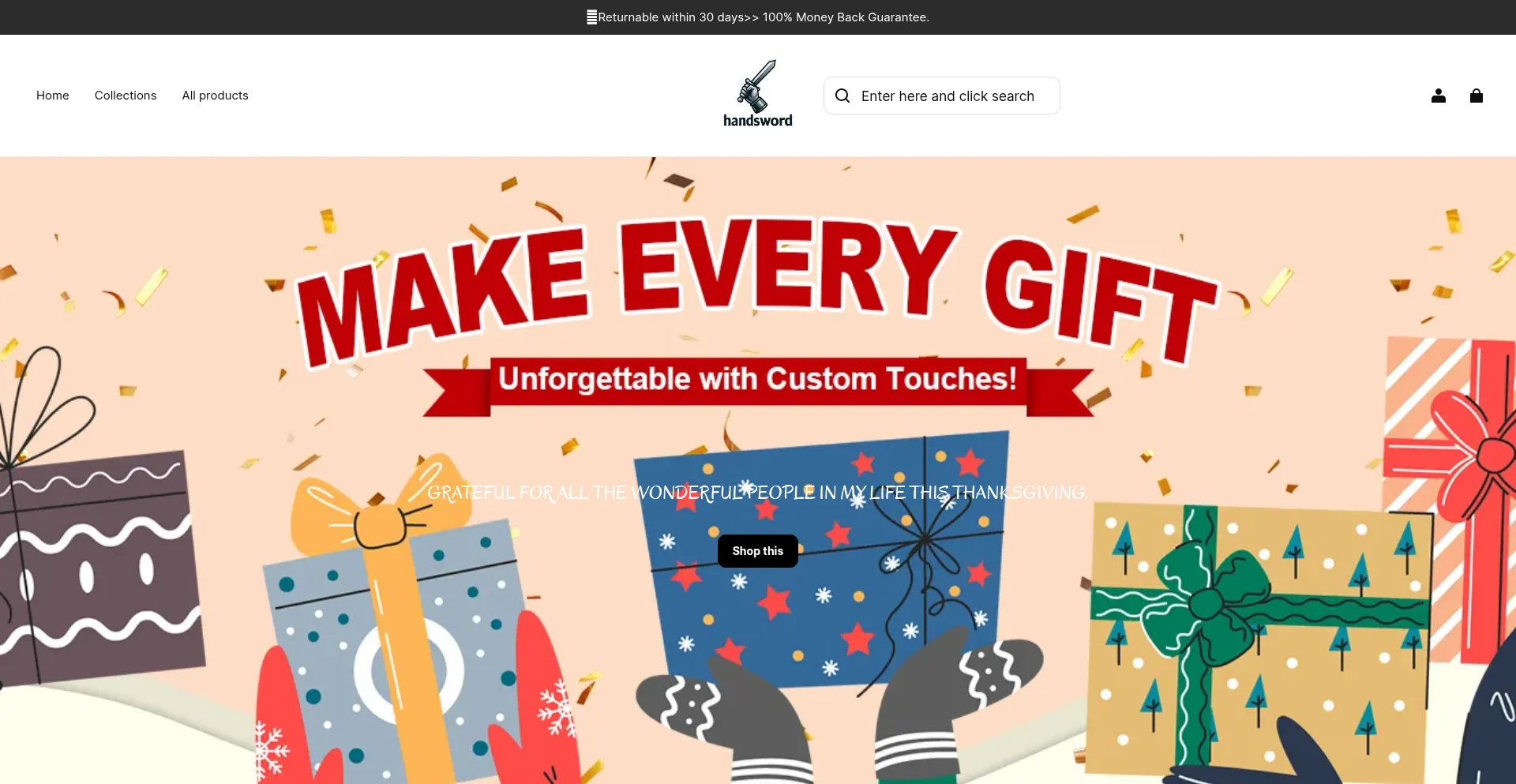 Analysis indicates that handsword.com operates as an e-commerce platform facilitating online transactions for goods or services. The website implements shopping cart functionality, payment processing systems, and product catalog features typical of commercial retail operations.