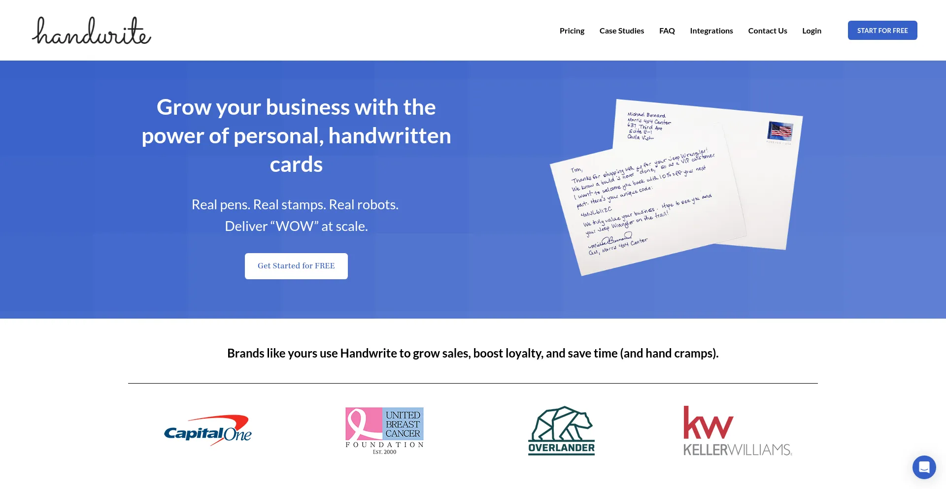 Grow your business with the power of personal, handwritten cards at scale. Fast, easy, and affordable with our proprietary robots using real pens. Try it free!